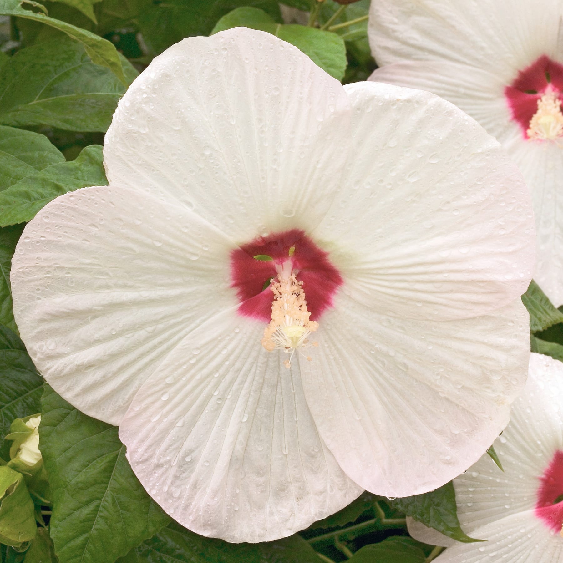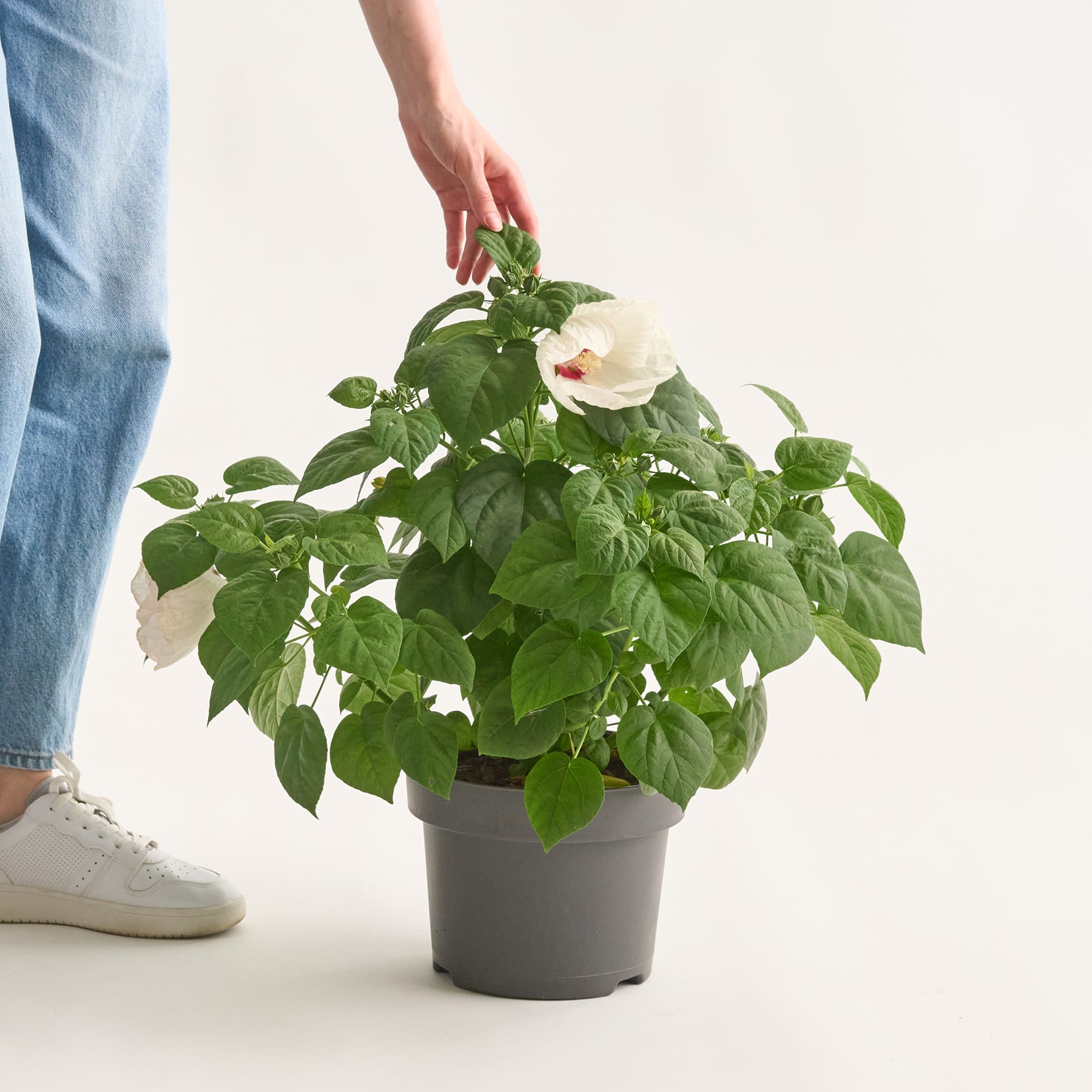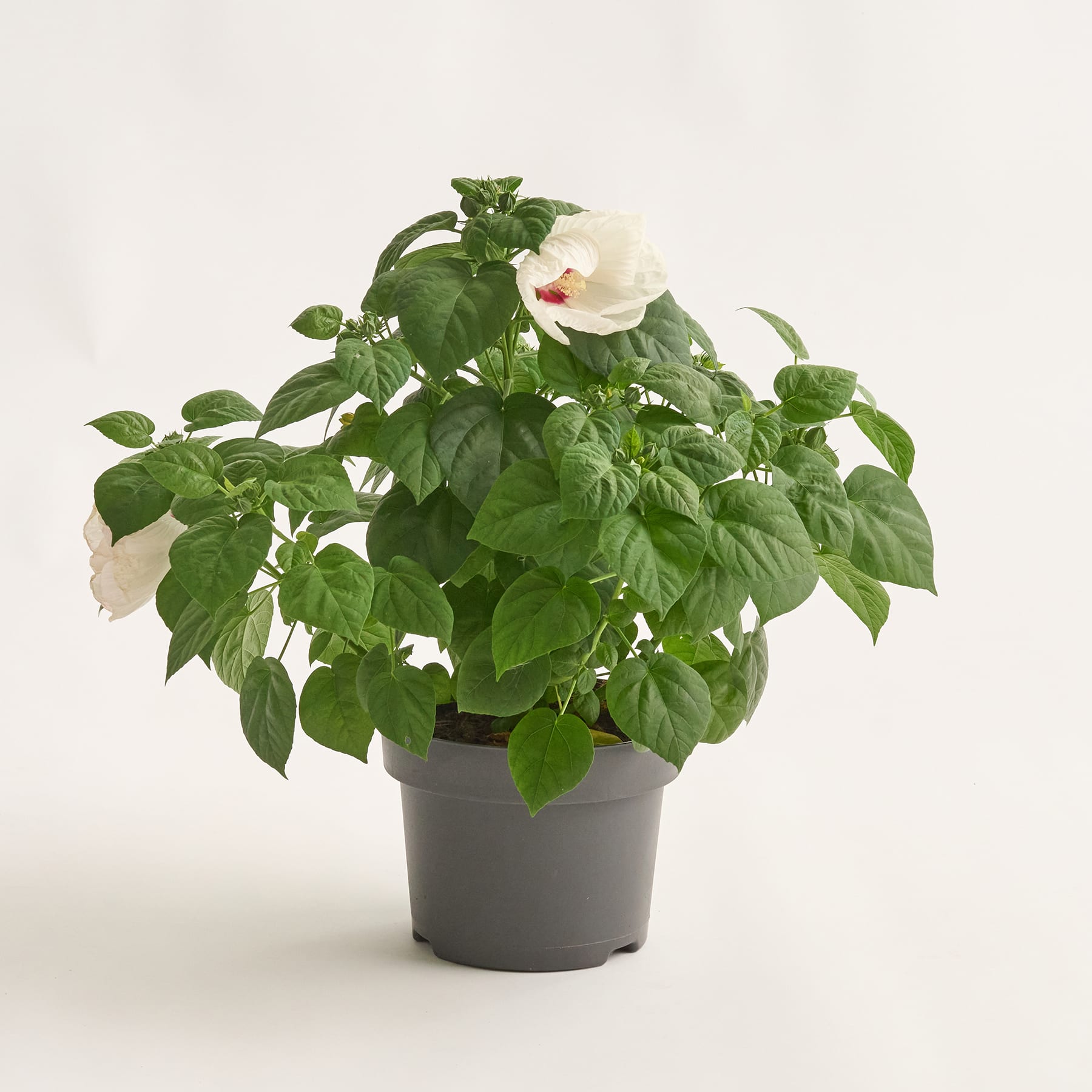 Der Weiße Staudenhibiscus 'Luna' ist eine Gartenpflanze mit Wow-Effekt. Wenn er von Juni bis September in Blüte steht, wird sich so mancher danach umdrehen oder sogar stehen bleiben. Ist aber auch kein Wunder bei den weißen Blüten! Sie sehen aus wie normale Hibiskus Blüten – nur im XL-Format, bis zu 30 cm Durchmesser können sie haben. Auch der Staudenhibiskus, botanisch Hibiscus moscheutos genannt, bleibt nicht sehr klein. Mit seinem buschigen Wuchs erreicht er gerne mal 2 m Höhe bei 1 m Breite. Damit passt er übrigens aber immer noch in Kübel auf Balkon oder Terrasse. Der Weiße Staudenhibiscus 'Luna' ist ein Sonnenanbeter, wenn du das beachtest und ihn mit ausreichend Wasser versorgst, belohnt er dich mit seinen herrlichen Blüten und einem gesunden Wuchs.