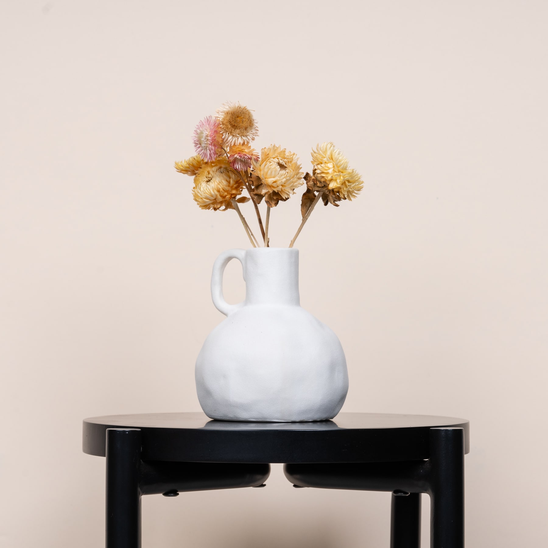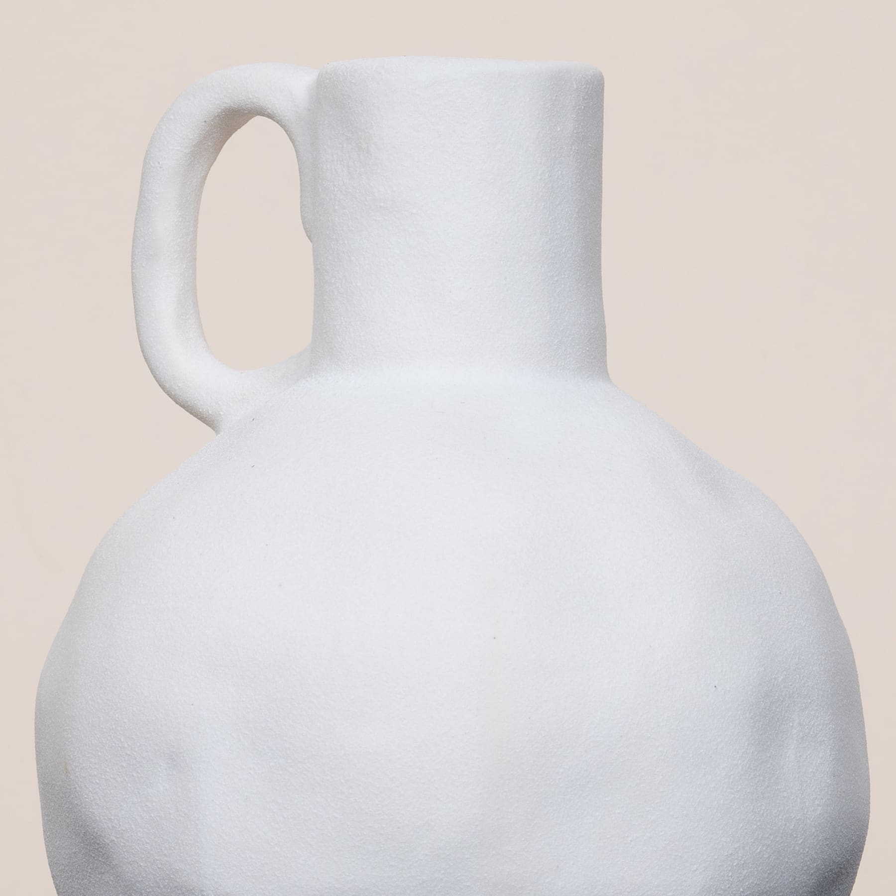 Der angesagte Japandi-Look verbindet japanische Ästhetik mit skandinavischer Gemütlichkeit. Beschreiben lässt er sich mit wenigen Worten: funktional, minimal, beruhigend und warm. Passend zu diesem Style fügt sich unsere "Vase mit Henkel" in Cremeweiß in das Ambiente ein. Sie ist aus Keramik gefertigt und mit einer rauen Oberfläche versehen. Ihre Höhe beträgt 14 cm, der Gesamtdurchmesser liegt bei 12,5 cm. Am Boden ist der Durchmesser mit 9,5 cm etwas geringer. Und, haben wir dir zu viel versprochen? Die Vase ist ein echter Eyecatcher mit individuellem Charme. Bei uns erhältst du die Keramikvase übrigens in drei unterschiedlichen Ausführungen. Jede einzelne besticht mit einer tollen Optik im angesagten Japandi-Style.