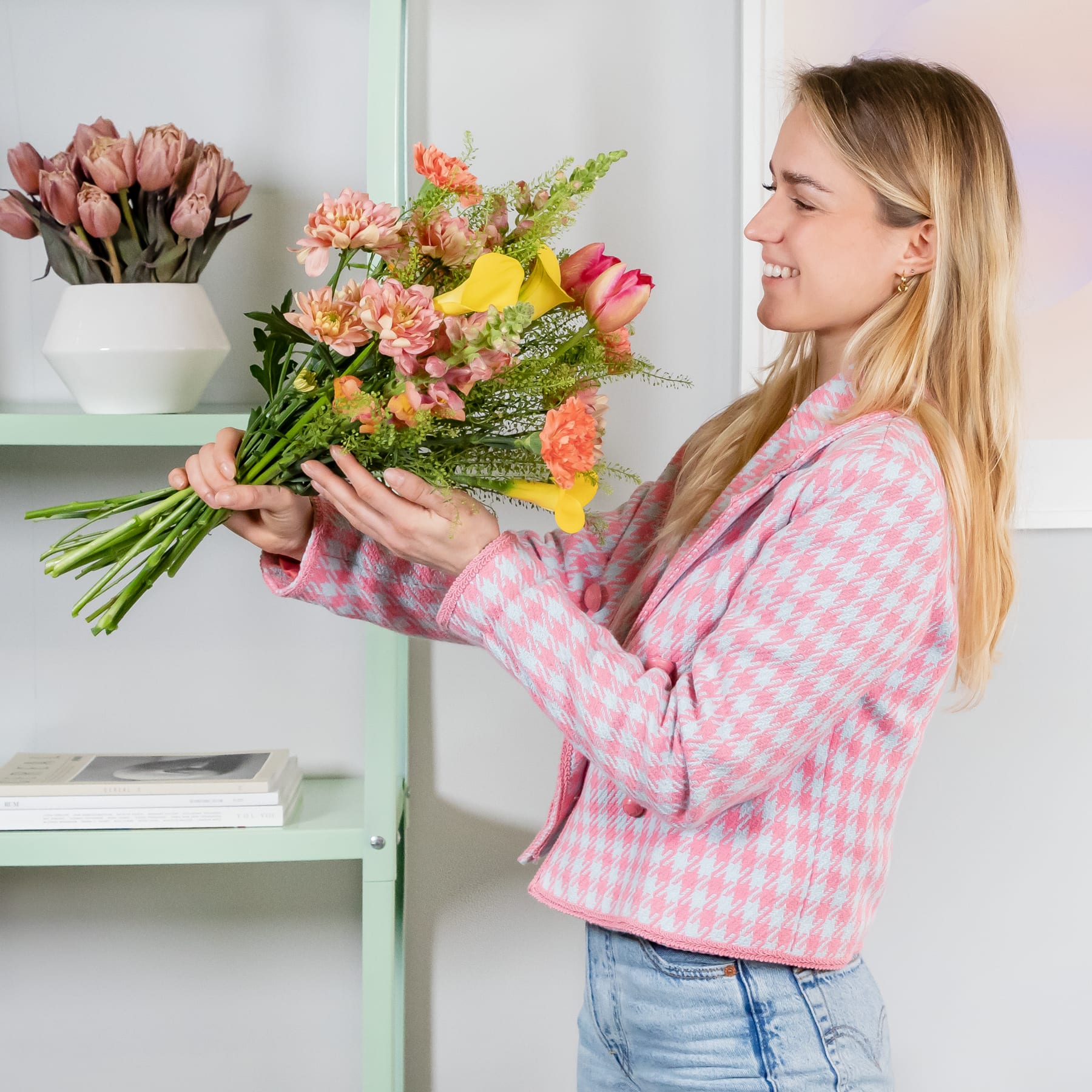 In deinem Blumen-Online-Workshop entsteht innerhalb von einer Stunde in lockerer und schöner Atmosphäre dein ganz individueller Strauß. Du wolltest schon immer mal wissen, wie man Chrysantheme, Tulpe und co. länger frisch hält? Unser Workshop-Team zeigt dir eine beliebte und moderne Bindetechnik und verrät dir weitere Geheimtipps. Außerdem zeigen wir dir, wie du lange Etwas von deinem Strauß hast. Ganz egal, ob fortgeschritten oder noch ganz am Anfang – Wir begleiten dich von der Blume bis zum Strauß. Dein Blumenpaket & Alles, was du für den Online-Workshop benötigst, bekommst du bis zum 21.02.2024 von uns zu dir nach Hause geschickt. Wir empfehlen dir den Express-Versand, damit dein Paket sicher bei dir eintrifft. Lege dir zusätzlich bitte folgende Materialien bereit: Blumenschere oder ein scharfes Messer und eine Vase mit frischem Wasser. Bei Rückfragen vorab wende dich gerne an: service@blume2000.de. Wir freuen uns schon auf Dich!