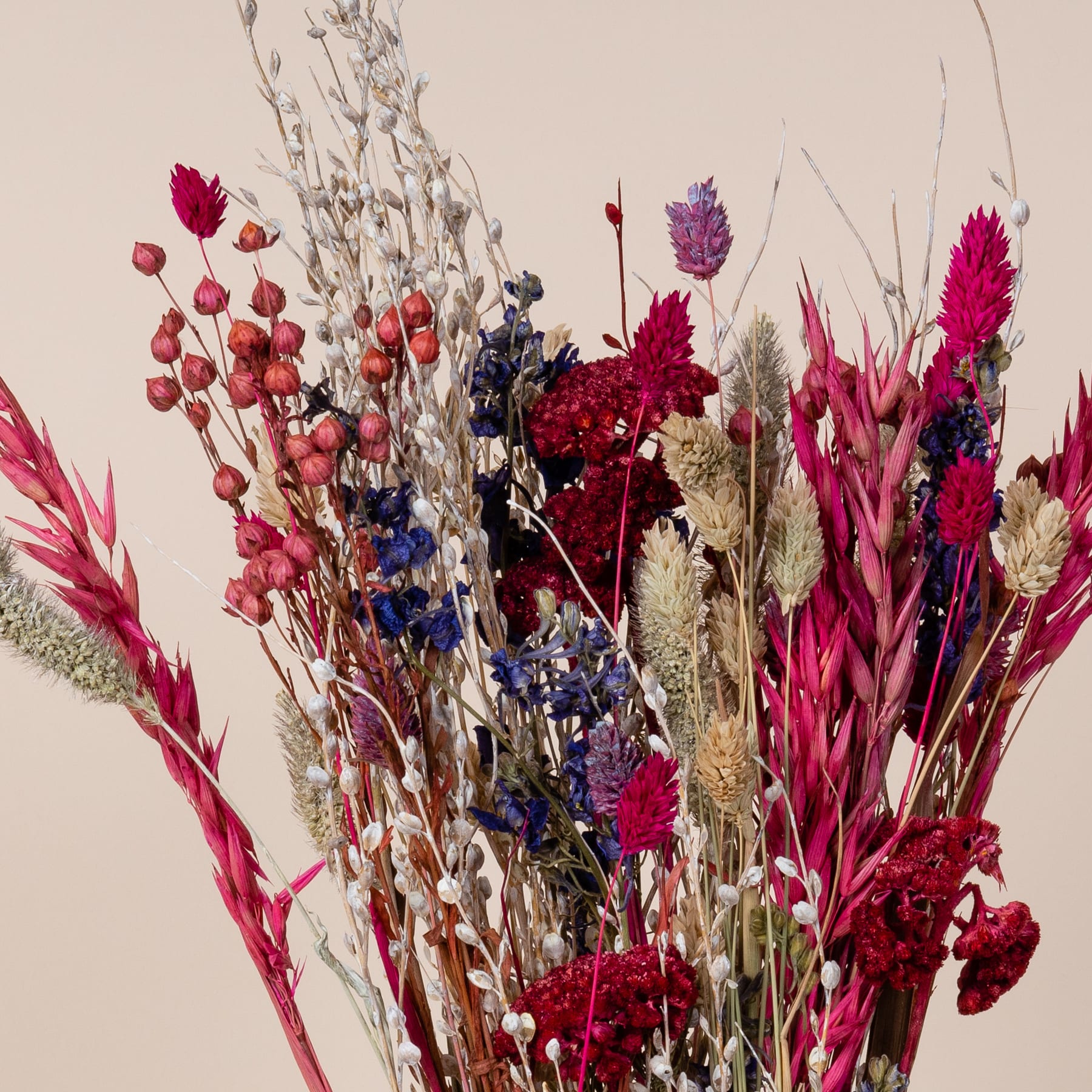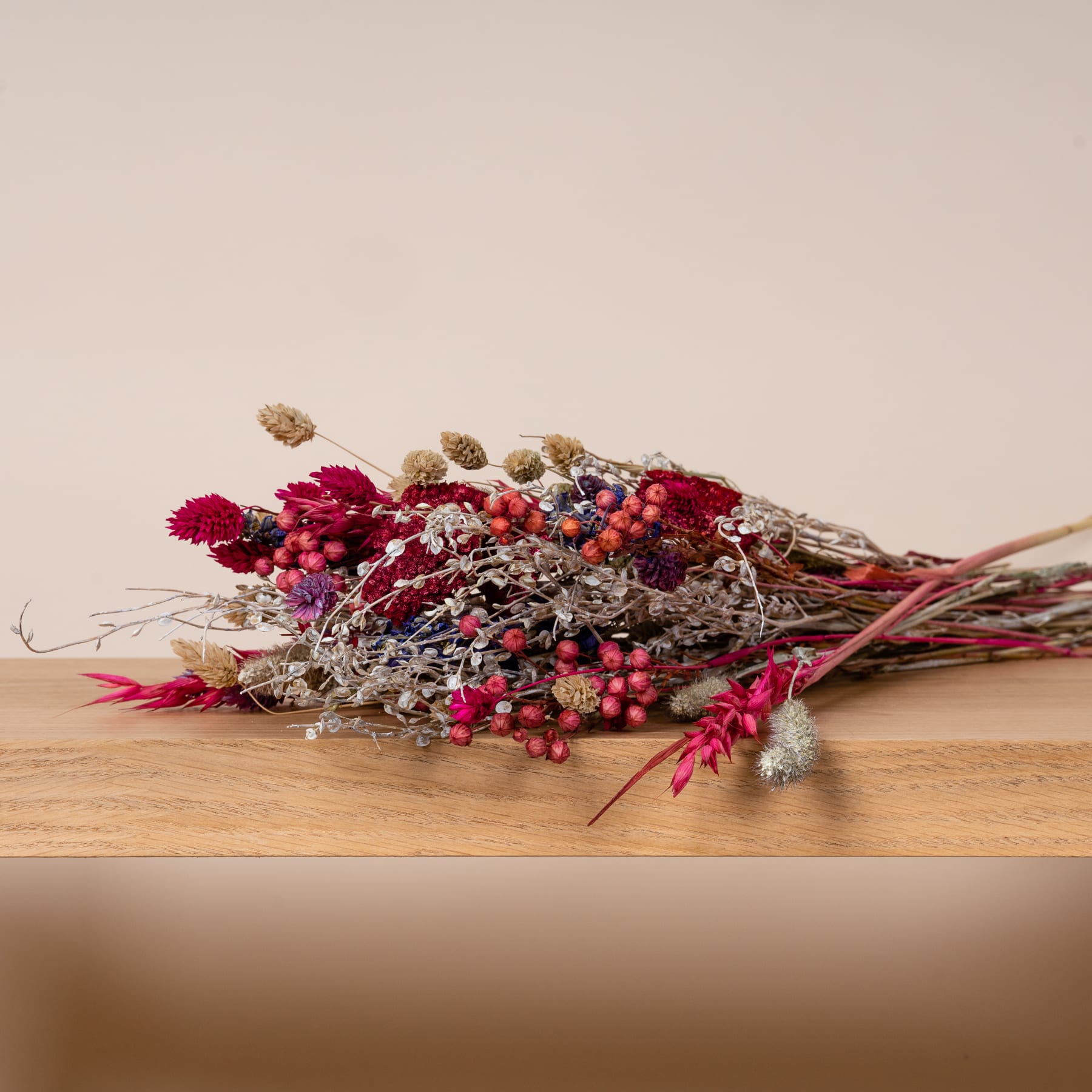 Dieser herrschaftliche Trockenblumenstrauß gehört natürlich nicht nur über den Kamin eines eindrucksvollen Cottage an der Côte d’Azur. Auch dein Zuhause ist würdig, von natürlichen Lilatönen im Bund umgarnt zu werden. Schmück dich gern mit den 60–70 cm langen „Federn“, die dir zustehen, und bestell diesen fürstlichen Trockenblumenstrauß rasch in unserem Online-Shop. Der Genuss des berauschenden Gefühls von Luxus und Ansehen wird mit dem Kauf dieses Blumenarrangements garantiert mit deinen Trockenblumen mitgeliefert.