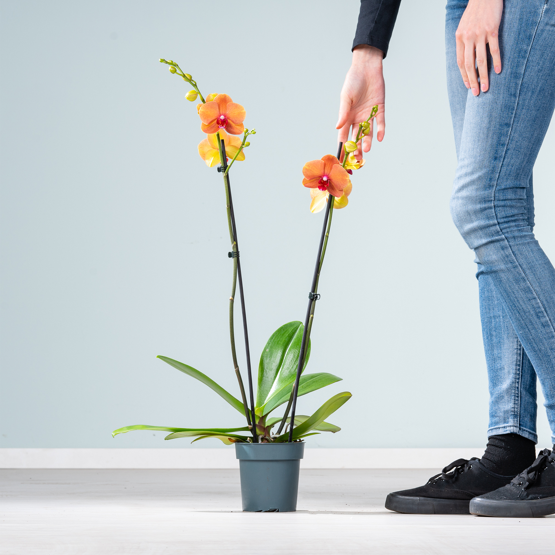 So ein klein Wenig erinnern ihre dickfleischigen, dunkelgrünen Blätter doch an Surfbretter, oder? Und für die perfekte Welle wäre jetzt natürlich das Badezimmer als Standort optimal, aber die Schmetterlingsorchidee 'Surf Song' passt mit ihren bis zu 70 cm Höhe und 40 cm Breite auch perfekt in dein Arbeits- oder Wohnzimmer. Oder du stellst sie in dein Schlafzimmer. Dank der wunderschönen, orangegelben Blüten dieser Vertreterin der Gattung Phalaenopsis hast du dann immer ein bisschen Sonnenuntergangs-Feeling und surfst ganz leicht ins Meer der Träume. Wenn Surfen so leicht wäre, wie die Pflege der Schmetterlingsorchidee 'Surf Song' – du würdest jede Welle meistern. Denn sie ist so einfach gestrickt, dass sie nicht viel Aufwand macht. Du musst nur drauf achten, dass sie nicht in der prallen Sonne steht, das mag sie nämlich nicht. Regelmäßig etwas Wasser und sie präsentiert dir immer wieder gerne ihre Schönheit.