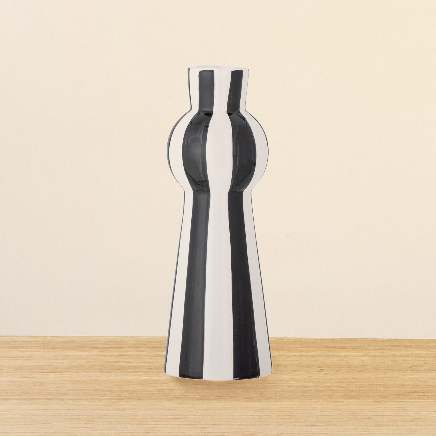 Die Eja Kerzenhalter von Bloomingville ist eine einzigartige Kerzenhalterung mit einer charakteristischen schwarz-weißen gestreiften Glasur. Die Kerzenhalterung wird mit einer eleganten Kerze wunderschön dekorieren, aber die grafischen Linien im Design bedeuten, dass sie auch ohne Licht als dekoratives Element verwendet werden kann.