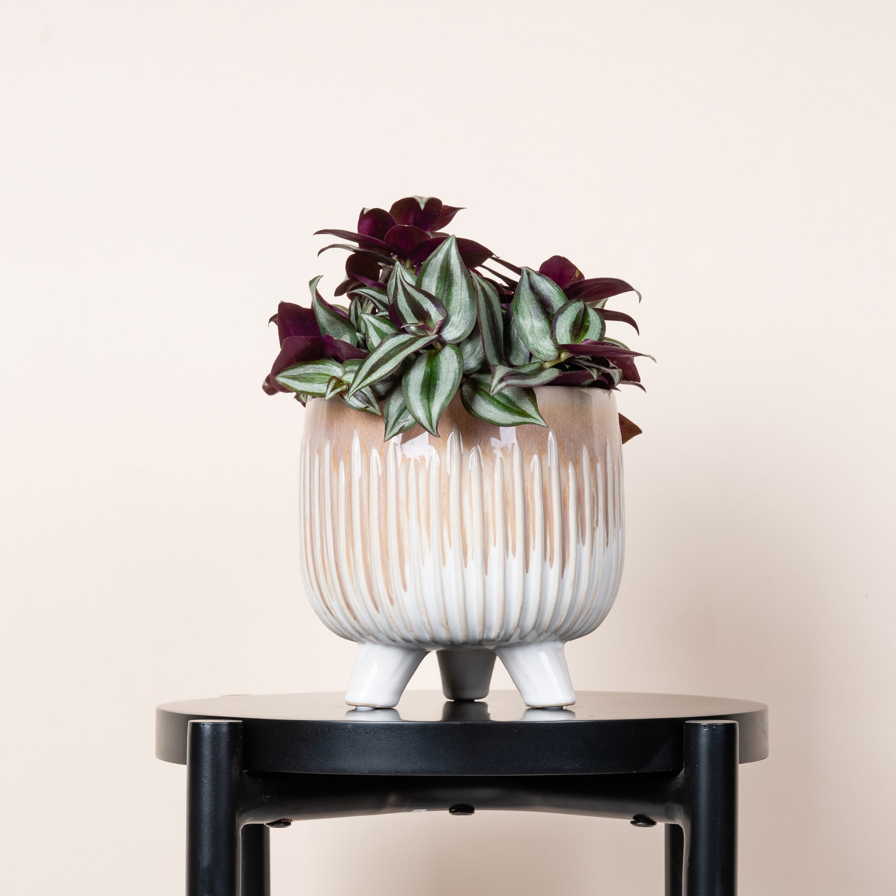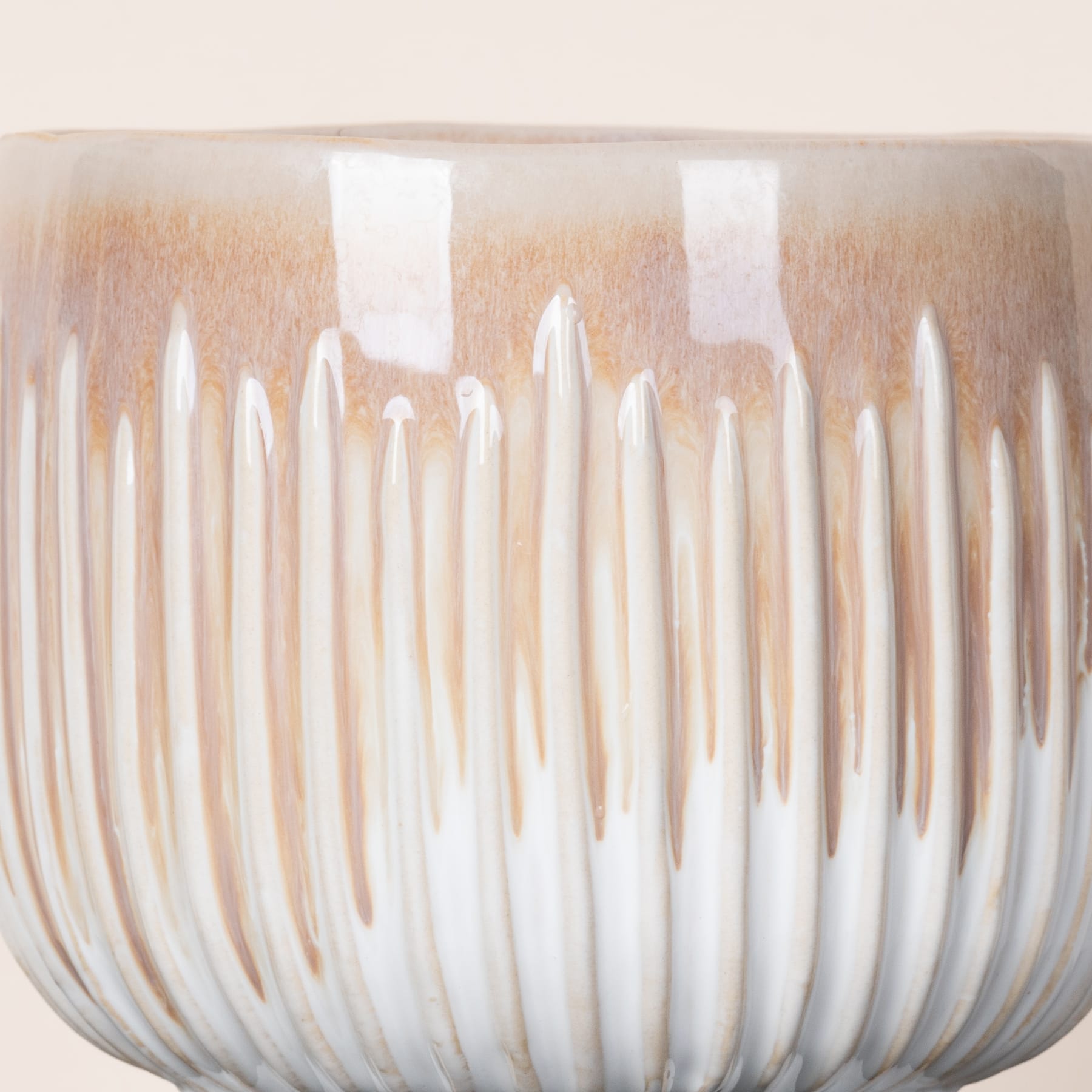 Zart wie eine Lotusblüte ist der rosa-weiße Farbverlauf dieses Blumentopfs aus Keramik. Heißt jetzt aber nicht, dass du nur Lotus reinpflanzen darfst, im Gegenteil: Dieser Pflanzkübel, stolze 14 cm im Durchmesser, ist so dezent, dass auch die zurückhaltenden unter deinen Pflanzen in ihm gut zur Geltung kommen. Und erst diese Moosgummifüßchen! Die sorgen erst recht dafür, dass deine Gäste ihn mit „Oh!“s und „Ah!“s bestaunen werden. Dann macht er sich richtig groß und erreicht ganze 11,5 cm in der Höhe – ohne Füßchen! So einen Blumentopf gibt’s nur einmal. Du kannst ihn trotzdem zweimal bestellen.