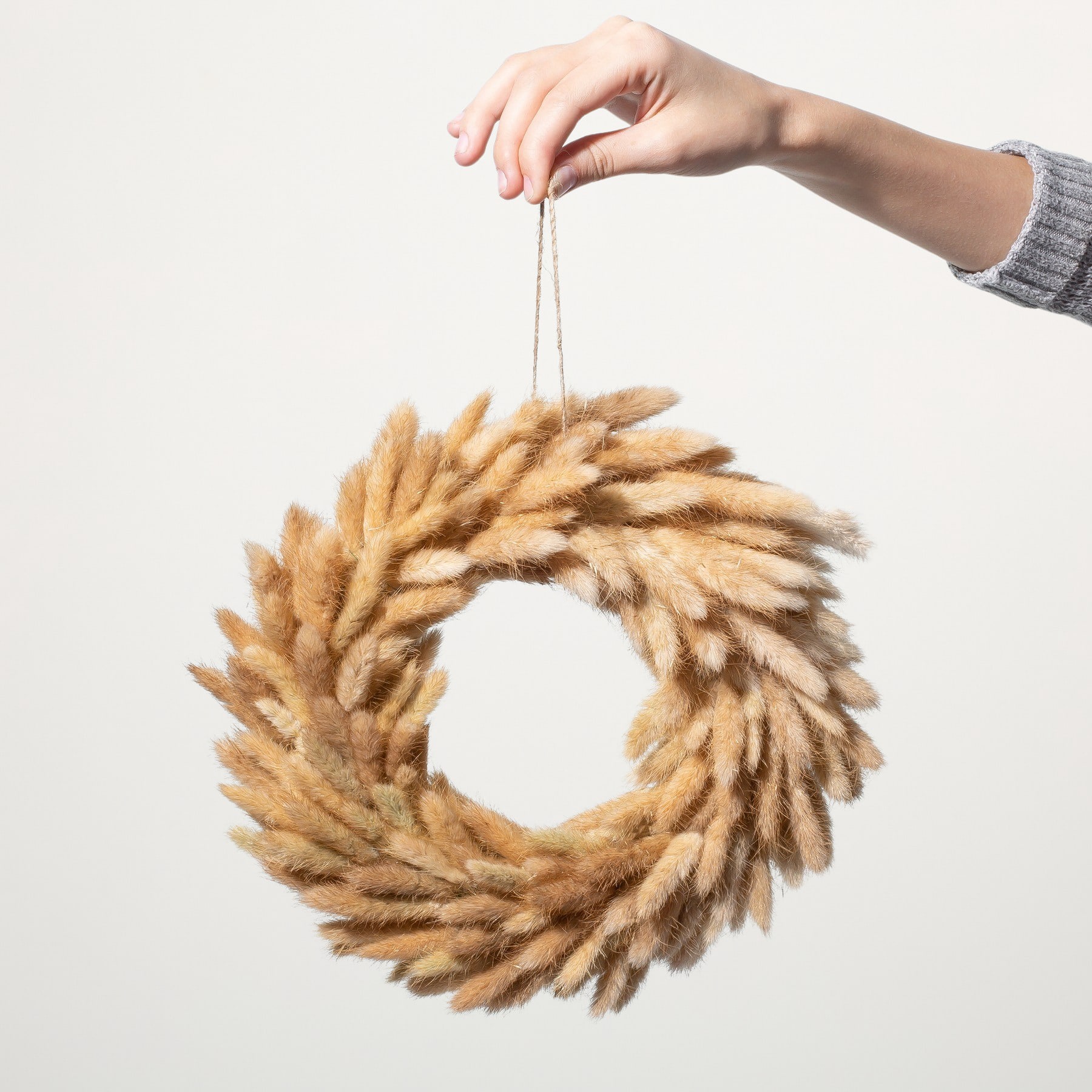 Wir liefern dir ein Stück Natur direkt in deine 4 Wände. Mit dem Trockenblumenkranz ‘Lagurus‘ pimpst du deine Wände und Türen mit einem dekorativen Schmuckstück und liegst damit ganz nebenbei noch voll im Trend! Bereits fertig gebunden und im getrockneten Zustand hast du mit dem Lagurus-Kranz einen treuen und flauschigen Freund, welcher dir viele Jahre Freude bereiten wird. Die nachhaltige Naturschönheit mit ihren weichen und samtartigen Blüten benötigt keinerlei Pflege, ist besonders hübsch anzusehen und versorgt jedes Zuhause mit einem gemütlichen und hyggeligen Wohnflair. Egal ob als Wandschmuck oder auf dem Esstisch, dieser puschelige Kranz gibt deiner Deko den letzten Schliff!