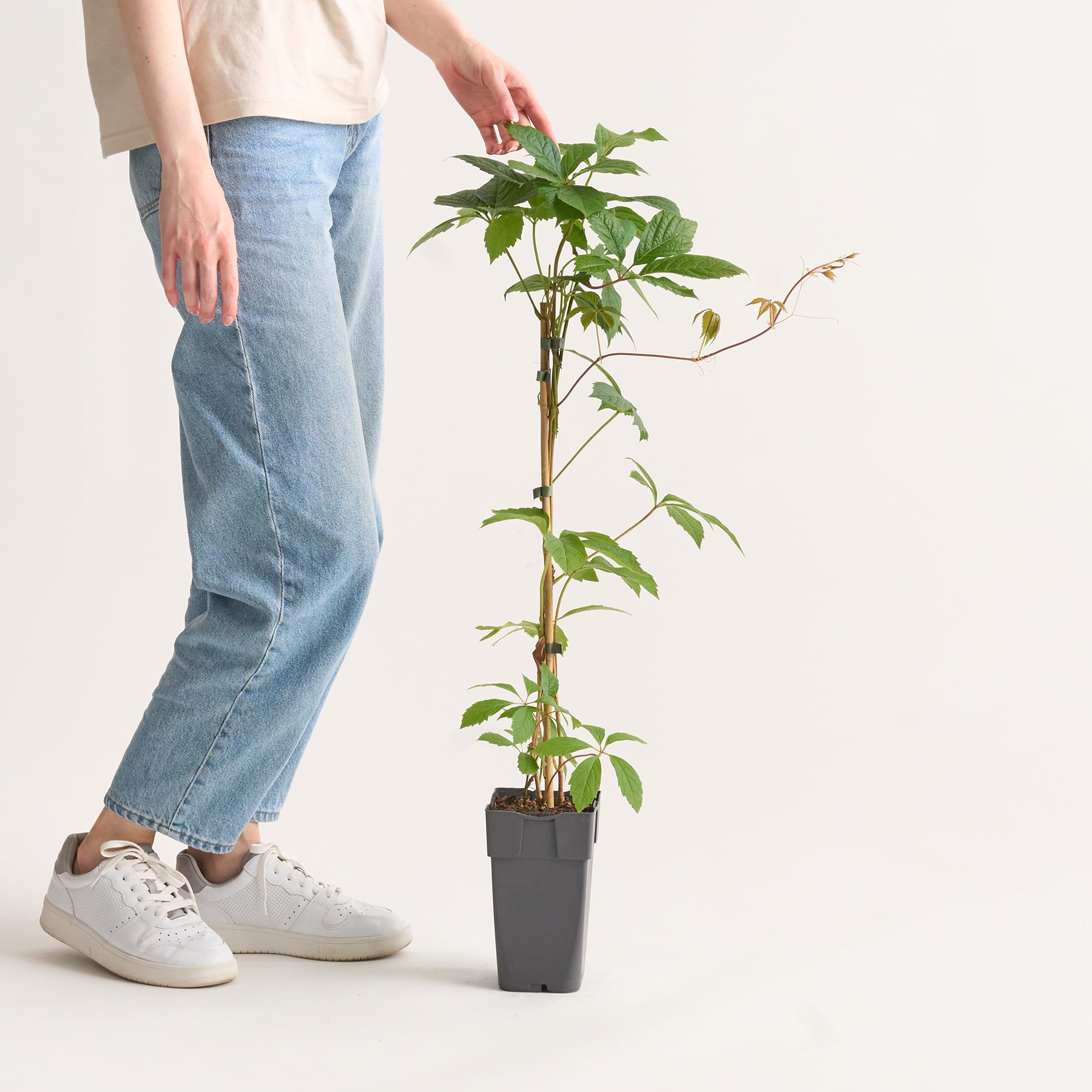 Triste Fassaden waren gestern, die Jungfernrebe 'Quinquefolia' bringt selbst an graue Mauern Farbe. Diese auch als Selbstkletternde Jungfernrebe bekannte Kletterpflanze hat dabei ein zügiges Wuchstempo, mit dem sie leicht mal 12 m in die Höhe und 3 m in die Breite kommt. Ihre handförmigen, gezähnten Blätter sind herrlich dunkelgrün, sorgen aber auch mit ihrer scharlachroten Herbstfärbung für Aufsehen. Übrigens wird diese Vertreterin der Art Parthenocissus quinquefolia auch Wilder Wein genannt. Vielleicht auch wegen der hübschen, blauen Früchte, die im September reif sind und sich aus den cremeweißen Blüten entwickeln. Diese finden von Juni bis August auch bei vielen Insekten großes Interesse. Was noch zu erwähnen ist? Natürlich, die hübschen, blauen, runden Früchte, die ab September reif sind. Die Jungfernrebe 'Quinquefolia' macht dir nicht viel Arbeit. Ausreichend Wasser, dazu ein sonniger bis halbschattiger Standort, mehr braucht sie nicht um munter zu wachsen.