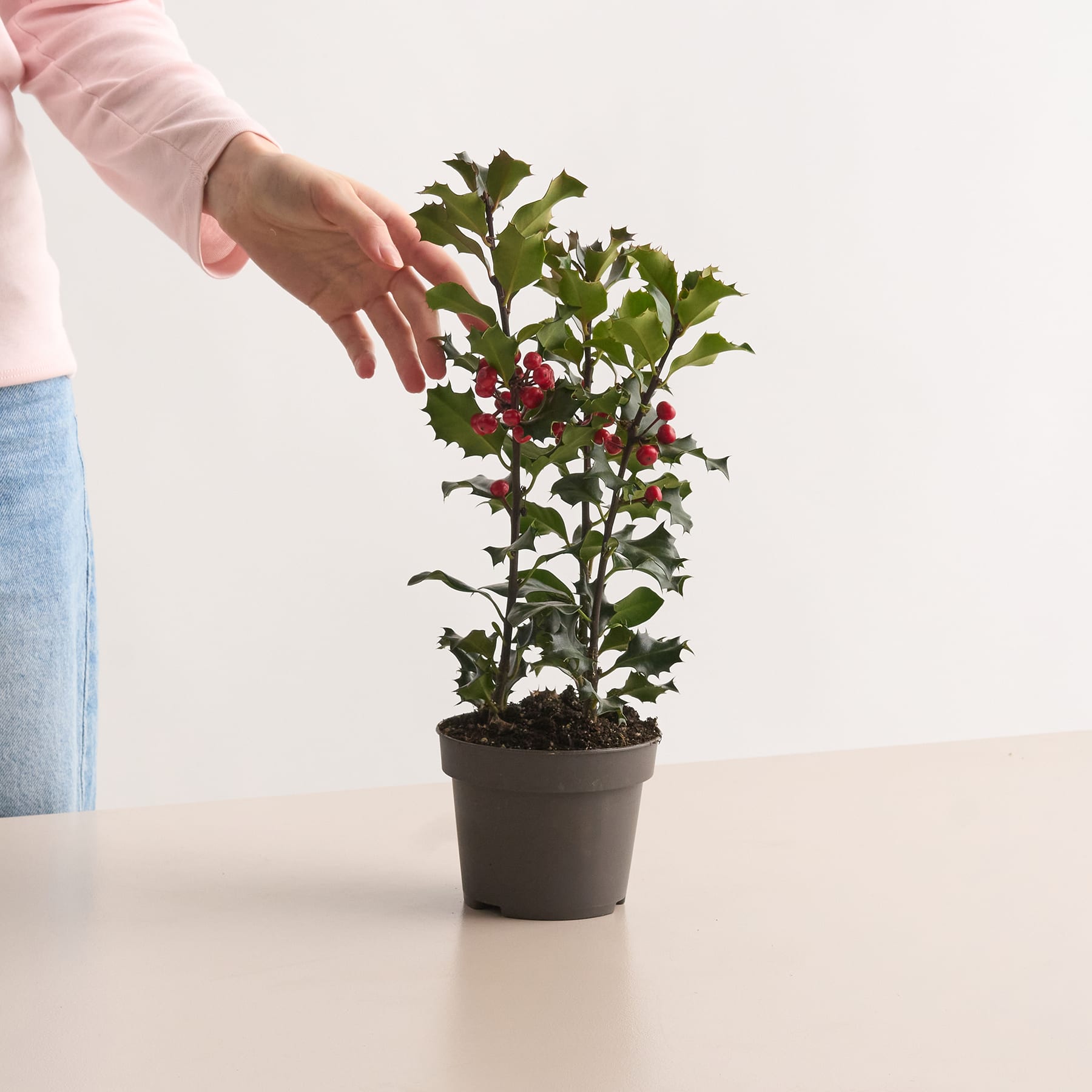 Die Stechpalme 'Blue Angel' bringt ganzjährig Farbe in deinen Garten. Ihr blaugrünes, glänzendes Laub und die stacheligen Blattränder machen sie zu einem echten Hingucker. Als weibliche Sorte trägt sie im Herbst erbsengroße, leuchtend rote Früchte. Diese Ilex aquifolium Art wächst langsam und kompakt, ideal für kleine Gärten oder Kübel. In der Weihnachtszeit sind die beerenbesetzten Zweige ein beliebter Schmuck. Robust und frosthart, passt sich die Stechpalme verschiedenen Standorten an und bildet einen dichten, immergrünen Sichtschutz.