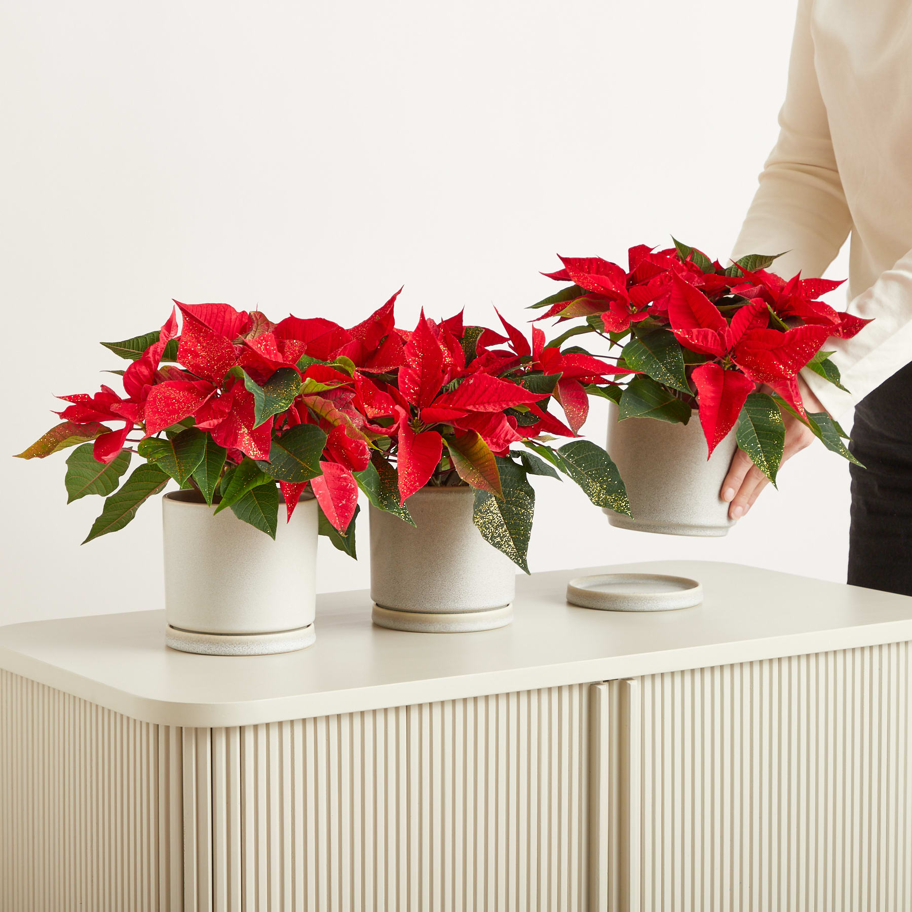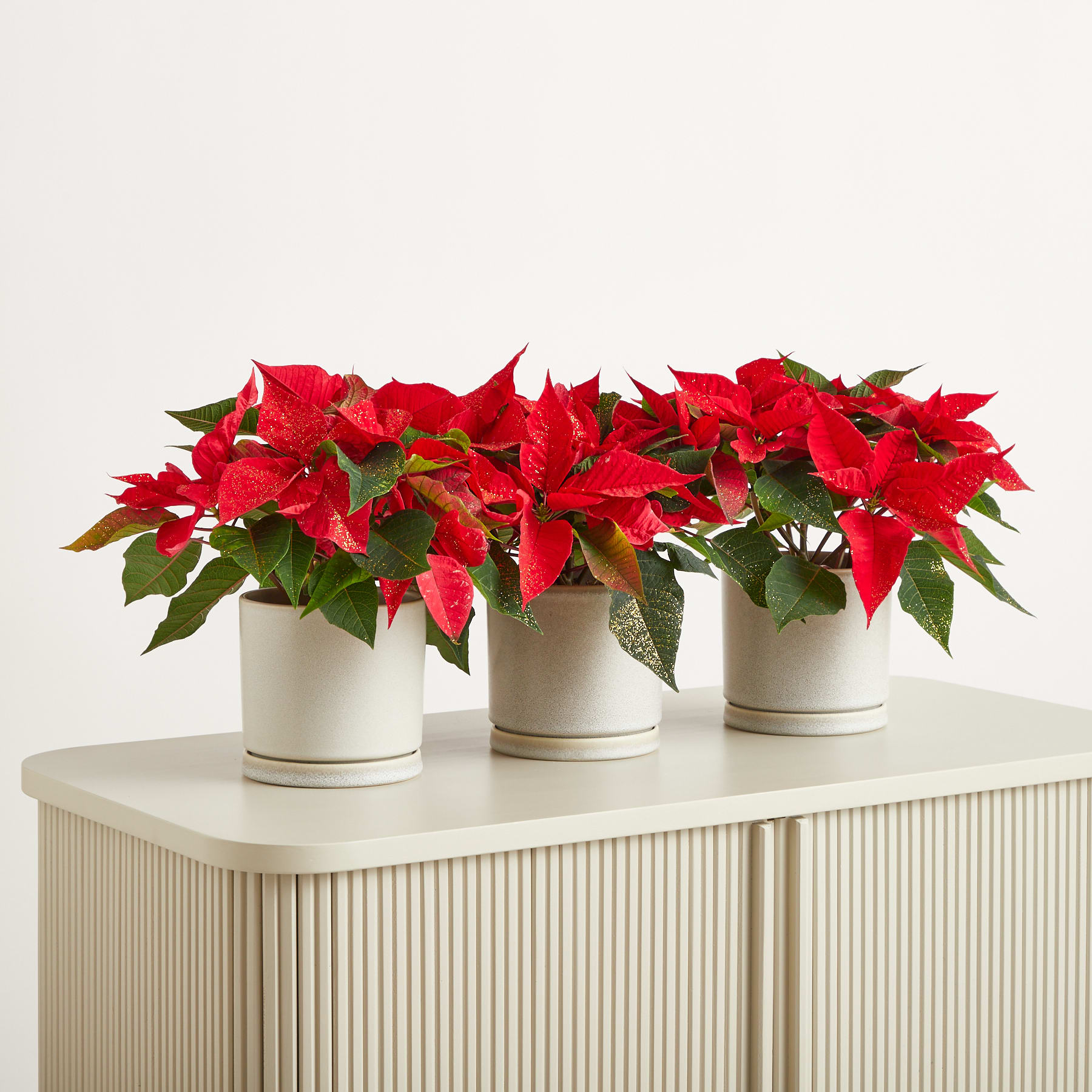 Bring festlichen Glanz in dein Zuhause mit dem Weihnachtsstern 'Christmas Feelings' in leuchtendem Rot und funkelndem Glitzer. Diese kompakte Euphorbia pulcherrima verzaubert mit ihrer Höhe von 25 bis 20 cm. Drei Pflanzen im Set sorgen für eine üppige Dekoration während der Weihnachtszeit. Der Weihnachtsstern ist der Inbegriff weihnachtlicher Stimmung und verwandelt deine Räume in ein festliches Paradies. Pflege diese Indoorpflanze mit Liebe, und sie wird dir die ganze Saison über Freude bereiten. Lass dich von der Kombination aus sattem Rot und glitzernden Akzenten in weihnachtliche Stimmung versetzen.
