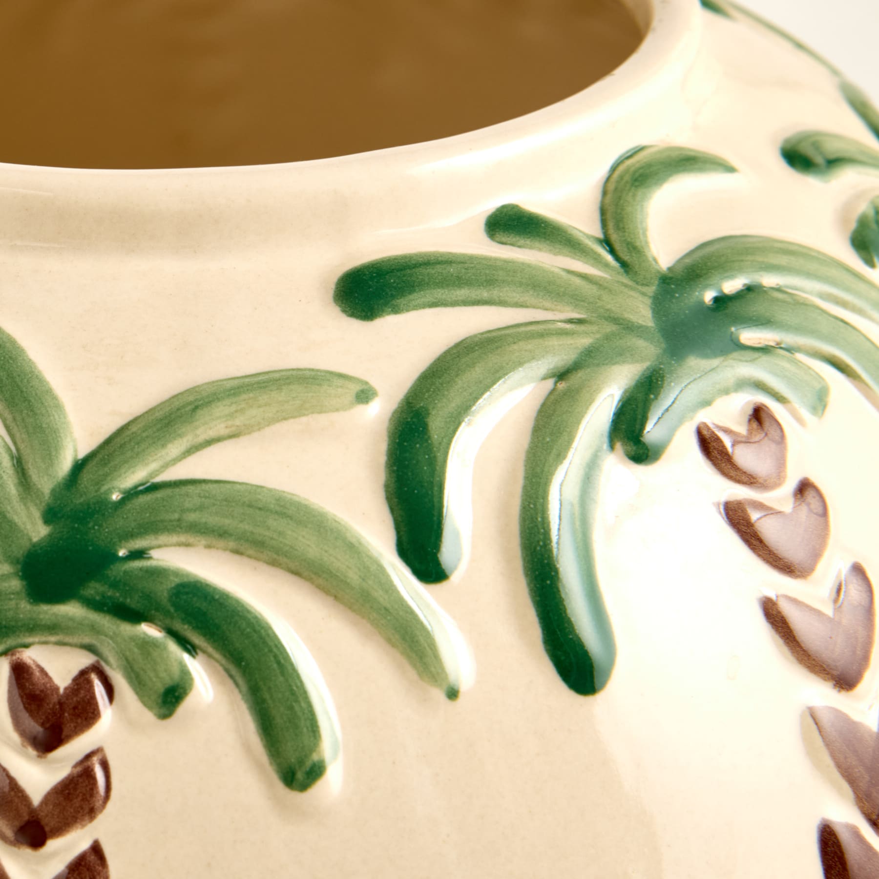 Die Keramik Vase Palmen in Beige verbindet zeitloses Design mit einem Hauch von Exotik. Das 360°-Design mit filigranen Palmenmustern macht sie aus jedem Blickwinkel zu einem dekorativen Highlight. Mit ihren Maßen von 28 x 28 cm eignet sie sich perfekt für frische Blumenarrangements, Trockenblumen oder als reines Deko-Element. Gefertigt aus hochwertiger Keramik ist die Vase nicht nur langlebig, sondern auch pflegeleicht – ein kurzer Wisch genügt, und sie erstrahlt wieder in vollem Glanz. Ihr modernes Design und die dezente Farbgebung passen in jedes Wohnkonzept und sorgen für ein elegantes Ambiente. Diese Vase ist ein echter Hingucker und bringt tropisches Flair in jeden Raum – perfekt für stilvolle Akzente im Alltag oder bei besonderen Anlässen.