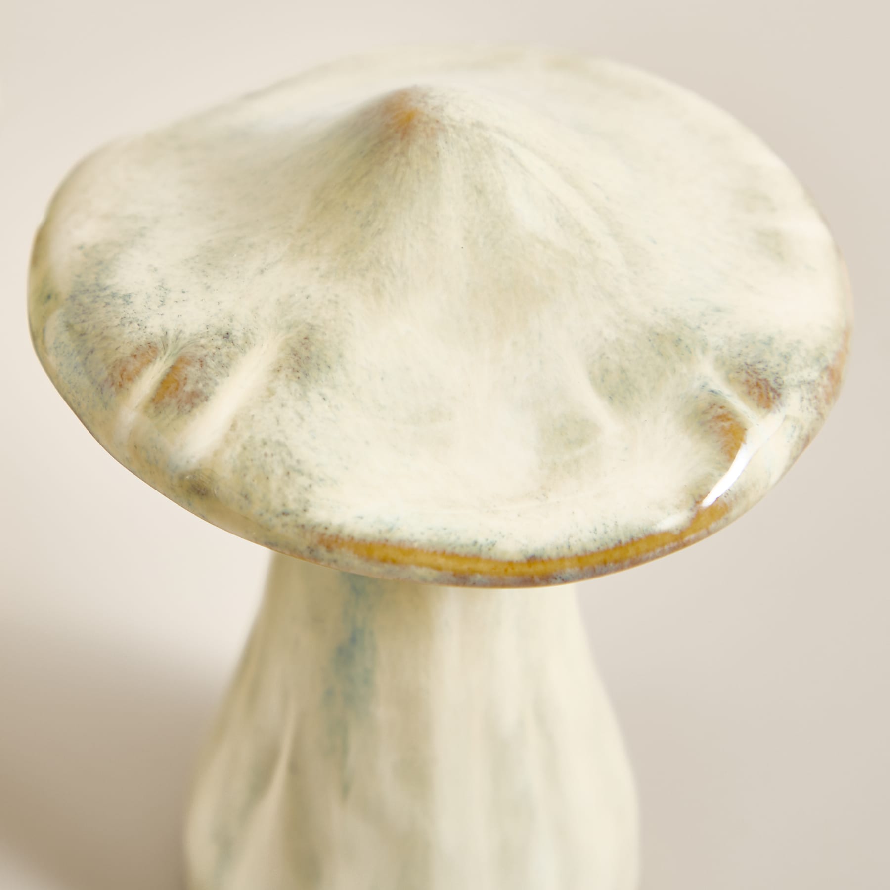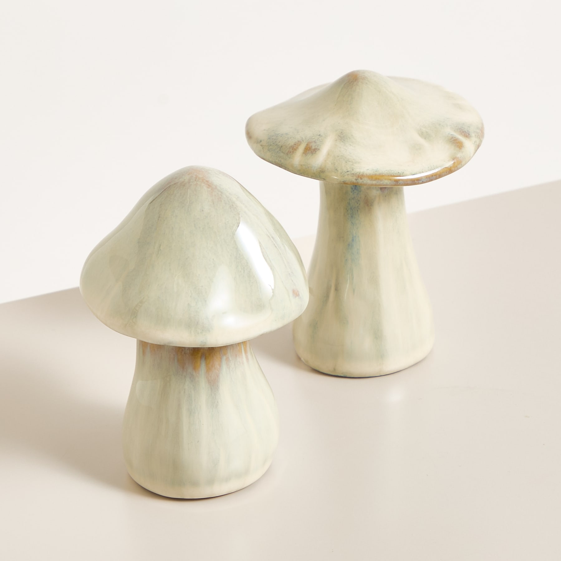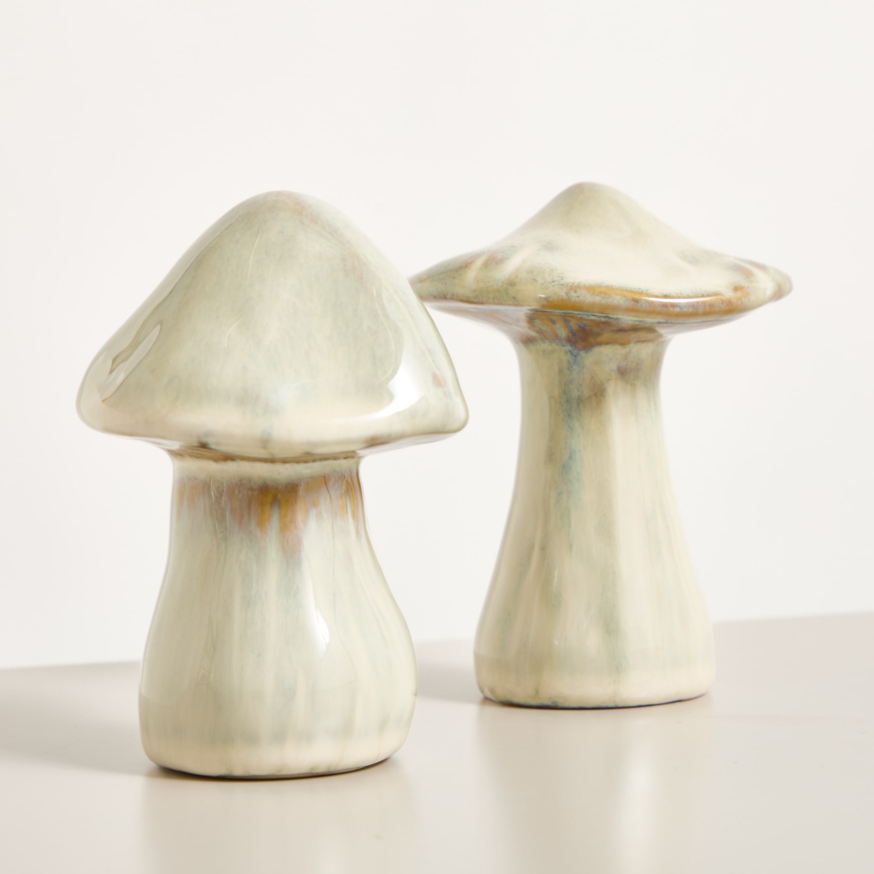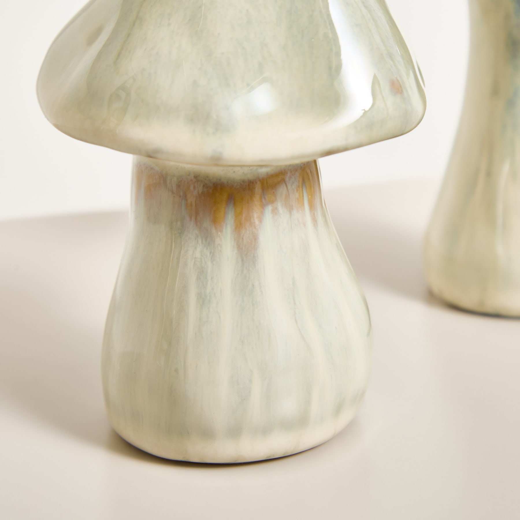 Zwei kleine Highlights für große Herbstgefühle: Dieses Deko-Set mit einem Durchmesser von 8 cm und einer Höhe von 10 cm bringt mit seinen zwei unterschiedlich geformten Pilzen aus Keramik sofort herbstliche Stimmung in deine vier Wände. Die glänzende, reaktive Glasur in Creme mit braunen Details unter dem Hut macht jeden Pilz zu einem Einzelstück – perfekt, um deine Herbstdeko stilvoll zu ergänzen. Ob auf einem Regal, dem Esstisch oder als Teil eines herbstlichen Arrangements mit Kastanien und Zweigen: Die Pilz Deko sorgt für warme Akzente und zieht alle Blicke auf sich. Lust auf ein bisschen Waldboden-Charme und gemütliche Vibes wie beim Herbstspaziergang? Dann darf dieses 2er-Set in deiner Herbstdeko nicht fehlen.