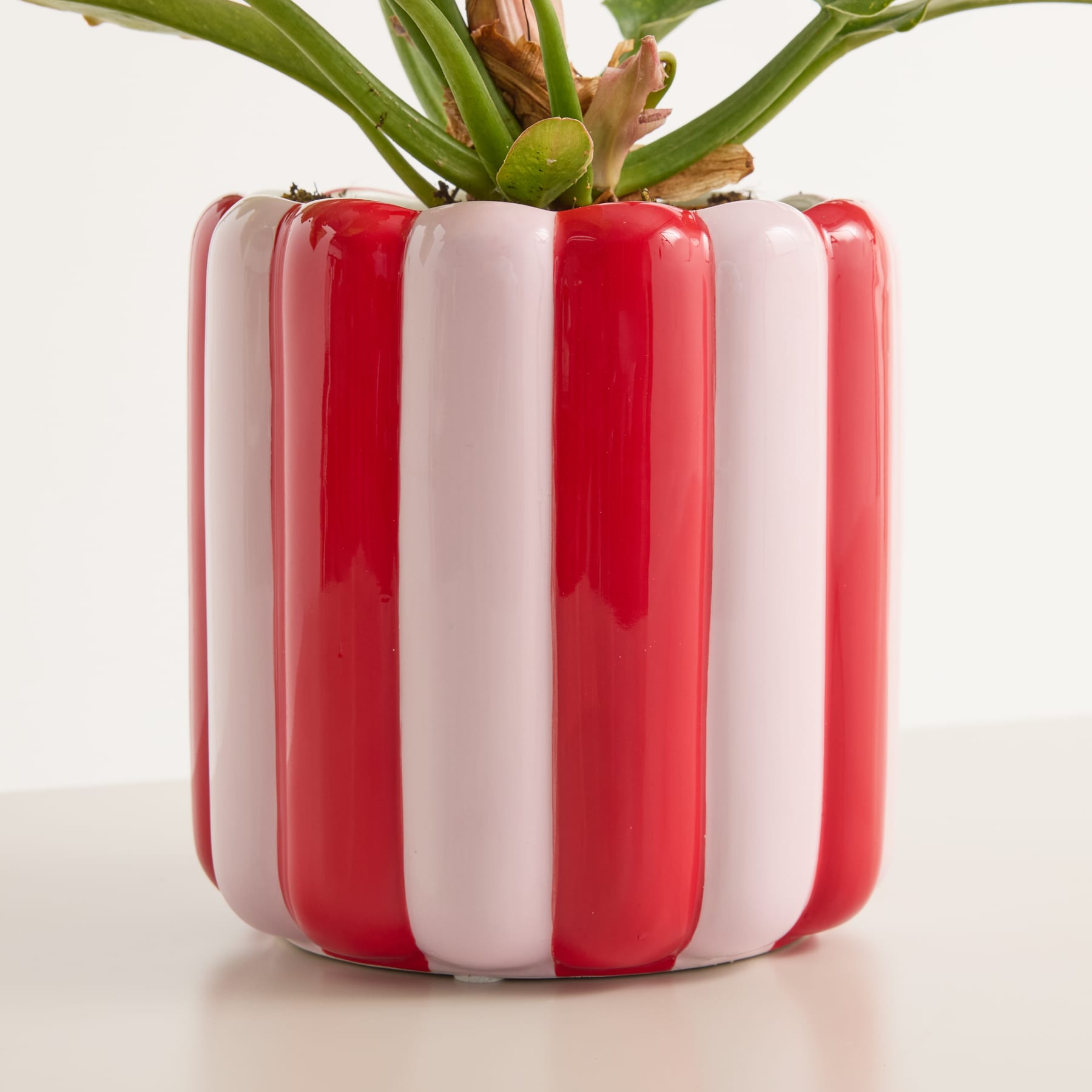 Der Keramik Übertopf Rosa Rot bringt lebendige Farbe und sanfte Formen zusammen. Die Kombination aus Rosa und kräftigem Rot sorgt für ein frisches, modernes Statement – perfekt, um grüne Mitbewohner in Szene zu setzen. Mit einem Durchmesser von 14,5 cm und einer Höhe von 15 cm eignet sich der Übertopf ideal für kleinere bis mittelgroße Pflanzen. Der Übertopf überzeugt durch Stabilität und eine angenehm glatte Oberfläche. Ob im Regal, auf der Fensterbank oder als Highlight auf dem Tisch: Dieser Keramik Übertopf macht aus jeder Pflanze ein dekoratives Highlight. Lust auf ein bisschen mehr Farbe im Alltag?