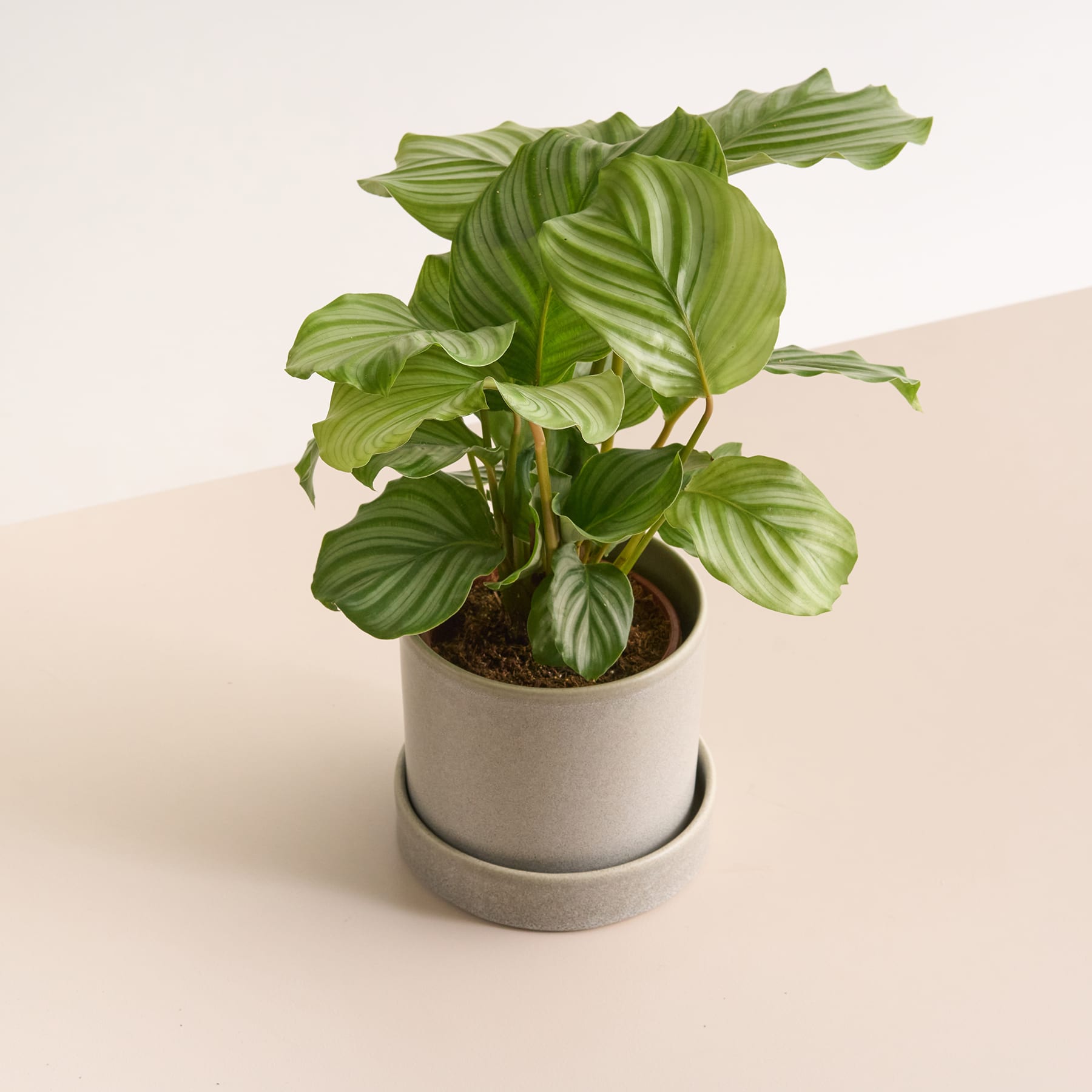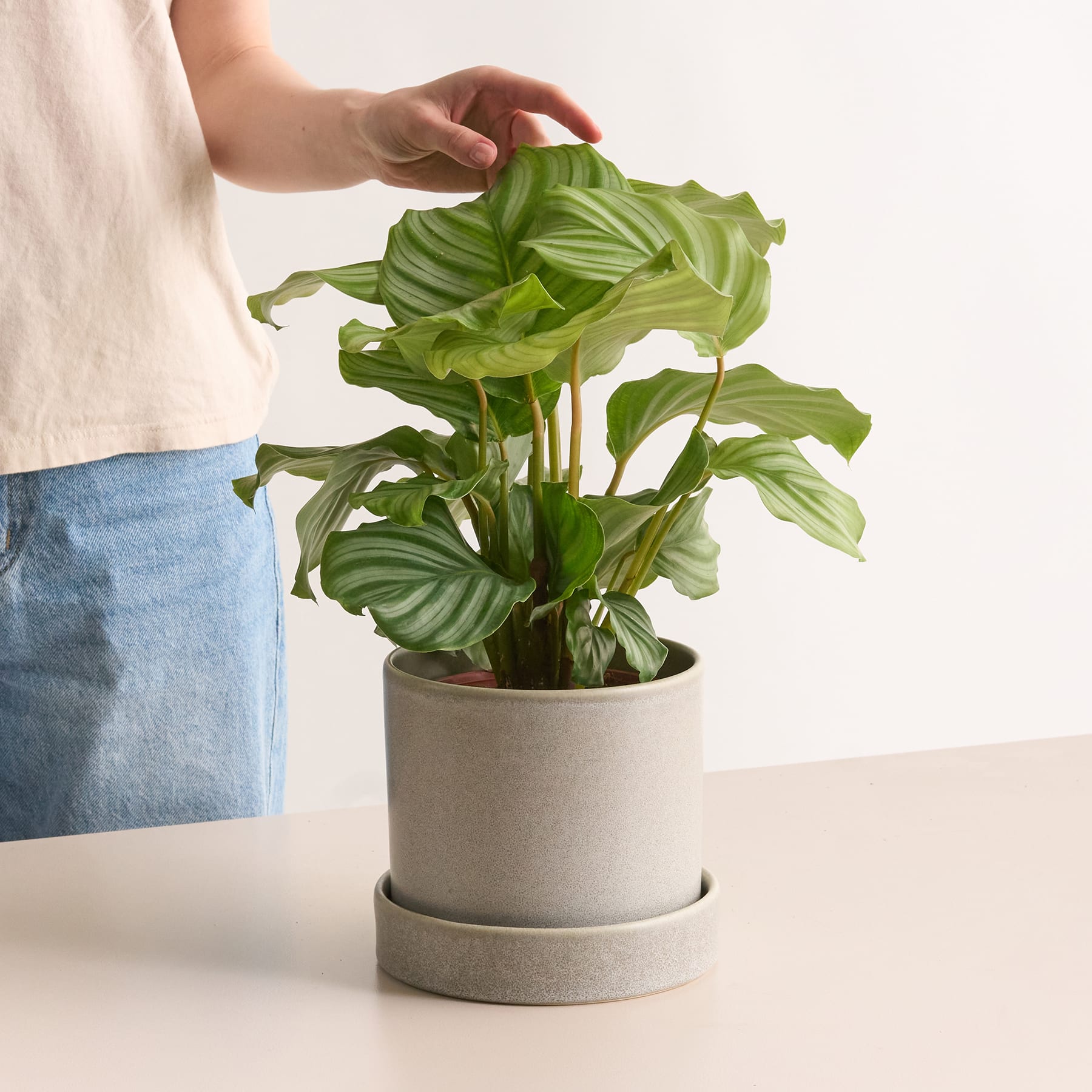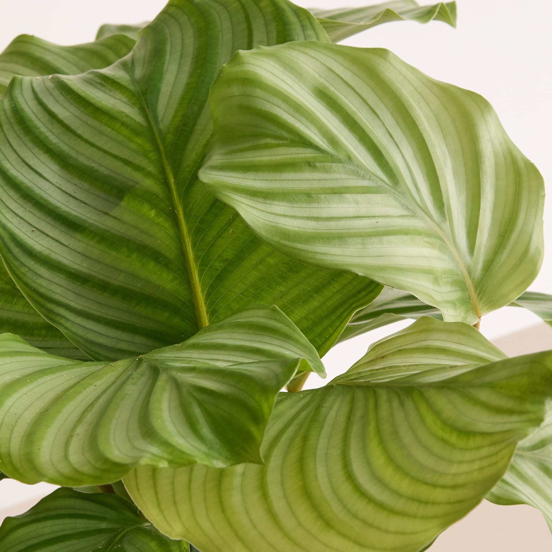 Die Calathea 'Orbifolia' ist ein wahres Meisterwerk der Natur. Ihre runden, großflächigen Blätter sind in sanften Grün- und Silberstreifen gemustert und bringen sofort Ruhe und Harmonie in den Raum. Die Calathea orbifolia liebt helle, indirekte Lichtverhältnisse und eine hohe Luftfeuchtigkeit. Halte ihre Erde stets leicht feucht, aber vermeide Staunässe. Mit ihrem sanften Blattmuster wirkt sie wie ein lebendes Kunstobjekt, das sich perfekt in moderne, minimalistische Wohnkonzepte einfügt. Die Calathea 'Orbifolia' ist mehr als nur eine Zimmerpflanze – sie ist ein Statement für stilvolles Wohnen.