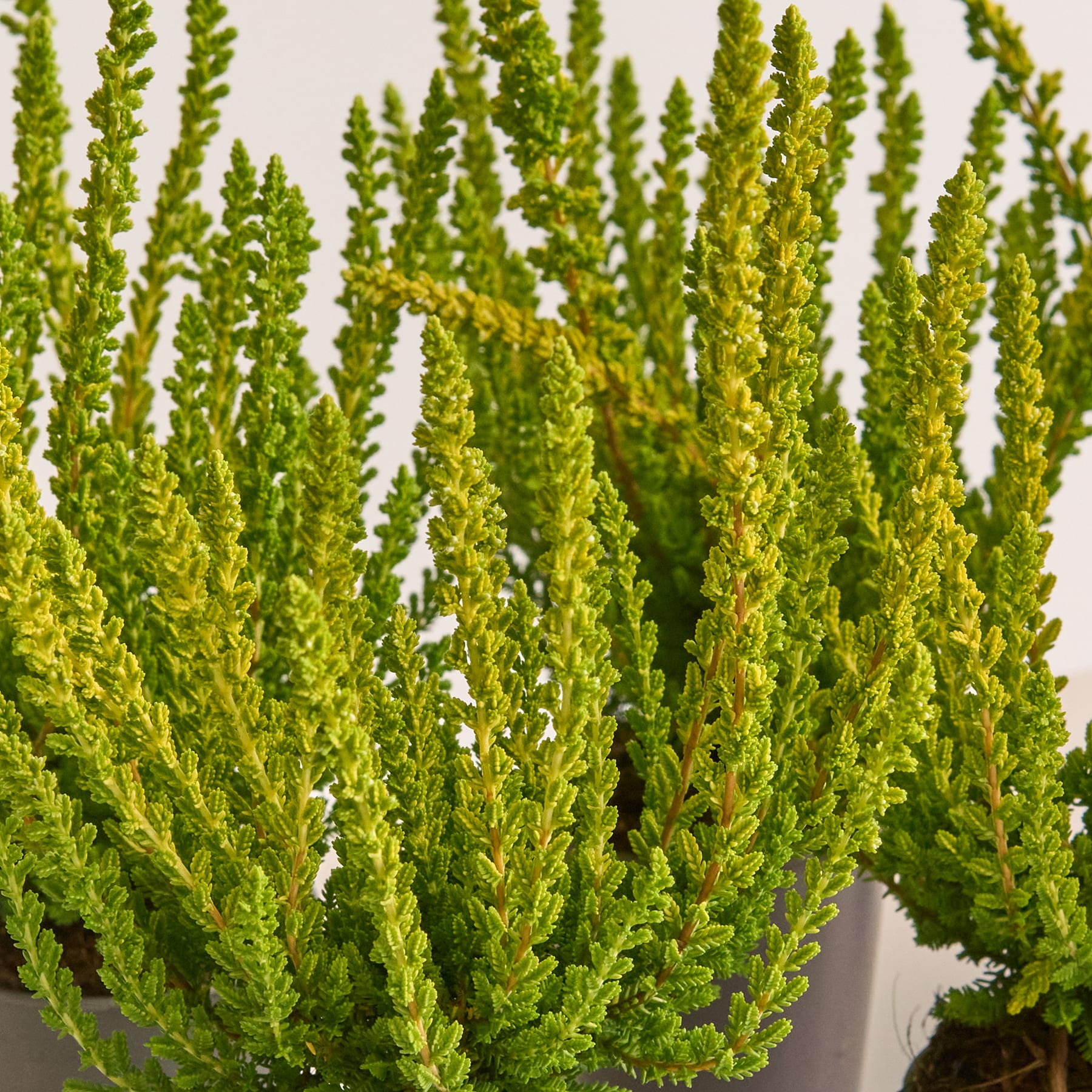 Sonnige Gelbtöne für den Herbst – die Besenheide 'Sunset® Zelda' strahlt mit ihrem leuchtenden Goldgelb und sorgt für warme Farbakzente in deinem Garten. Die Calluna vulgaris zeigt sich buschig und robust, wächst am besten an sonnigen bis halbschattigen Standorten in durchlässigem, leicht saurem Boden.