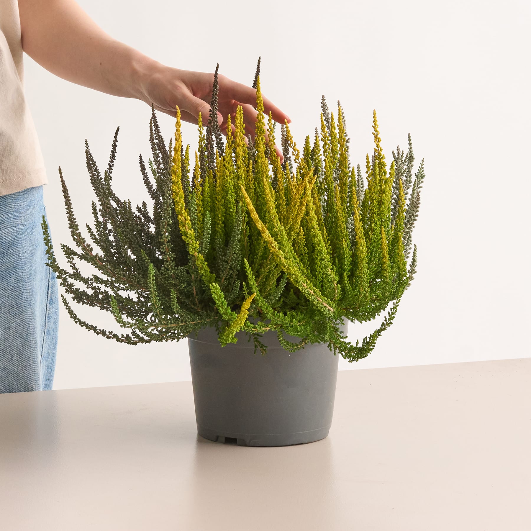 Dramatisch und ausdrucksstark – die dreifarbige Besenheide 'Sunset® Fire' Schwarz zieht sofort die Blicke auf sich. Ihr dunkles, fast schwarzes Laub kontrastiert eindrucksvoll mit goldgelben und frischgrünen Spitzen. Die Calluna vulgaris bringt damit eine edle Tiefe und gleichzeitig strahlende Akzente in deine Herbstgestaltung.