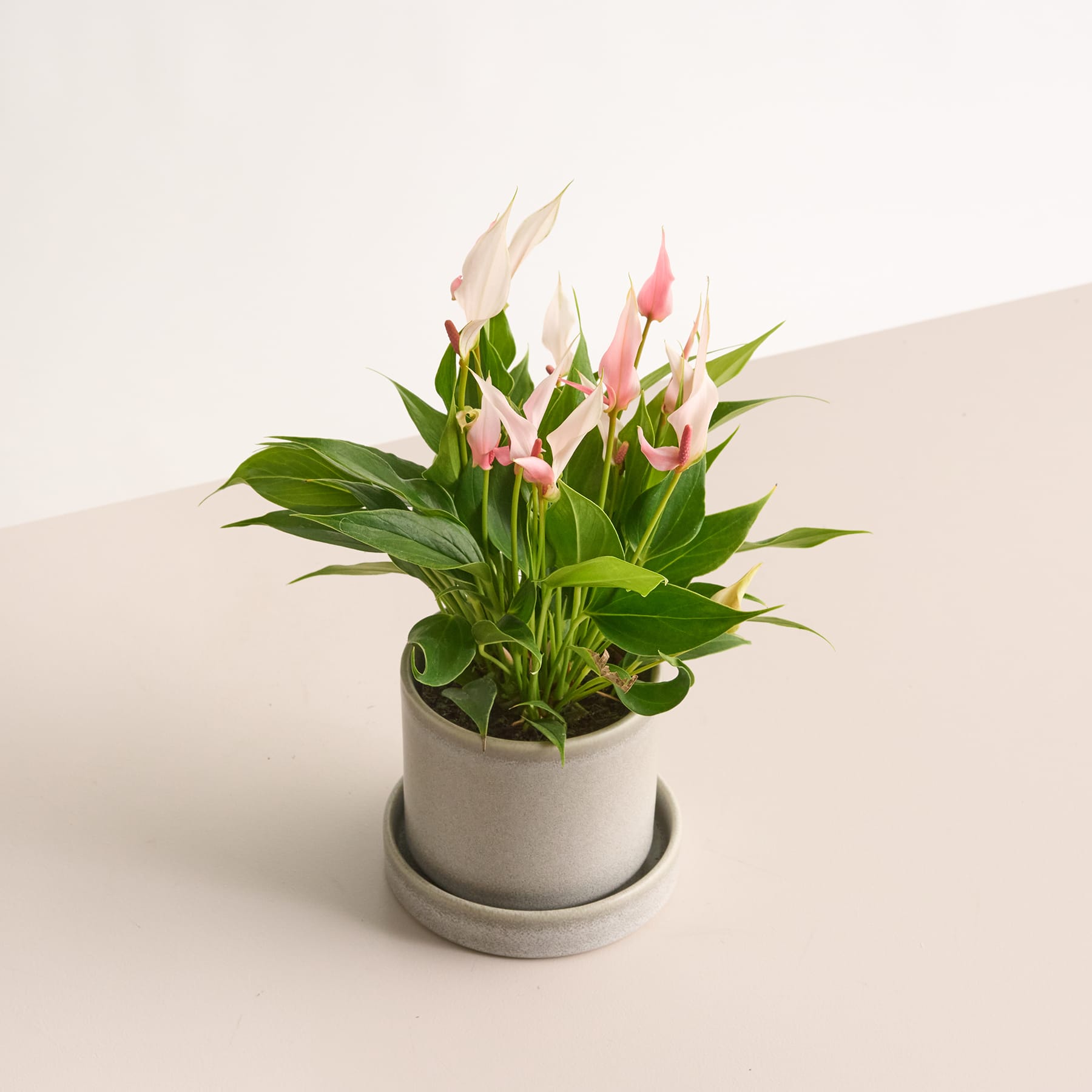 Zart und dennoch ausdrucksstark: Die Flamingoblume 'Lilli' begeistert mit zierlichen, rosafarbenen Hochblättern, die sich elegant vom satten Grün des Laubs abheben. Die Anthurium andraeanum liebt helle, indirekte Lichtverhältnisse, ohne direkte Mittagssonne. Ihr Wasserbedarf ist moderat – am wohlsten fühlt sie sich, wenn die Erde konstant leicht feucht bleibt. Regelmäßiges Besprühen steigert ihr Wohlbefinden und sorgt für langanhaltende Blütenpracht. Die Flamingoblume 'Lilli' ist eine stilvolle Wahl für alle, die ein sanftes, aber dennoch wirkungsvolles Farbspiel in ihre Wohnräume bringen wollen. Mit ihrer harmonischen Ausstrahlung setzt sie dezente, aber bleibende Akzente.