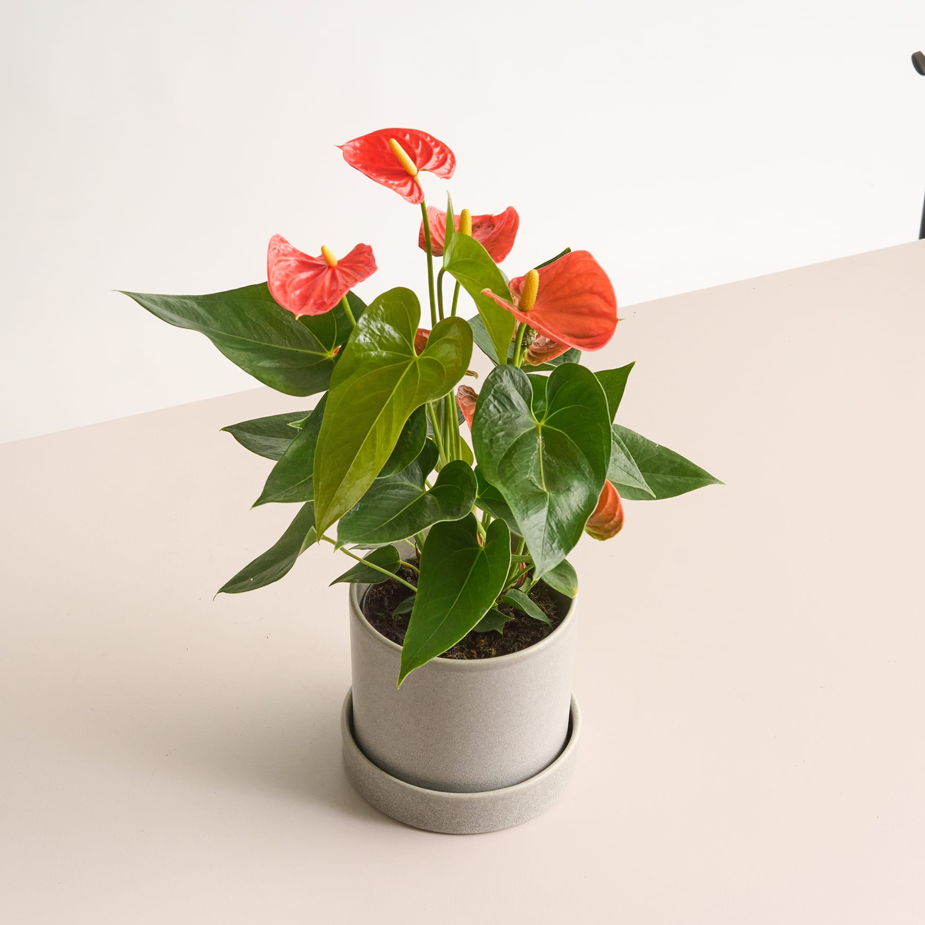 Mit ihrer strahlend weißen Blütenpracht bringt die Flamingoblume 'Florida' eine edle, klare Note in jedes Interieur. Als Anthurium andraeanum liebt sie helle, indirekte Lichtverhältnisse und gleichmäßige Feuchtigkeit. Der Wasserbedarf ist moderat – Staunässe gilt es zu vermeiden. Warme Temperaturen und hohe Luftfeuchtigkeit lassen sie besonders vital wirken. Die Flamingoblume 'Florida' ist ein zeitloser Klassiker, der mit seinen reinen Farben Eleganz ausstrahlt und zu nahezu jedem Einrichtungsstil passt. Ob auf einem Sideboard oder als Tischdekoration – sie zieht garantiert bewundernde Blicke auf sich.