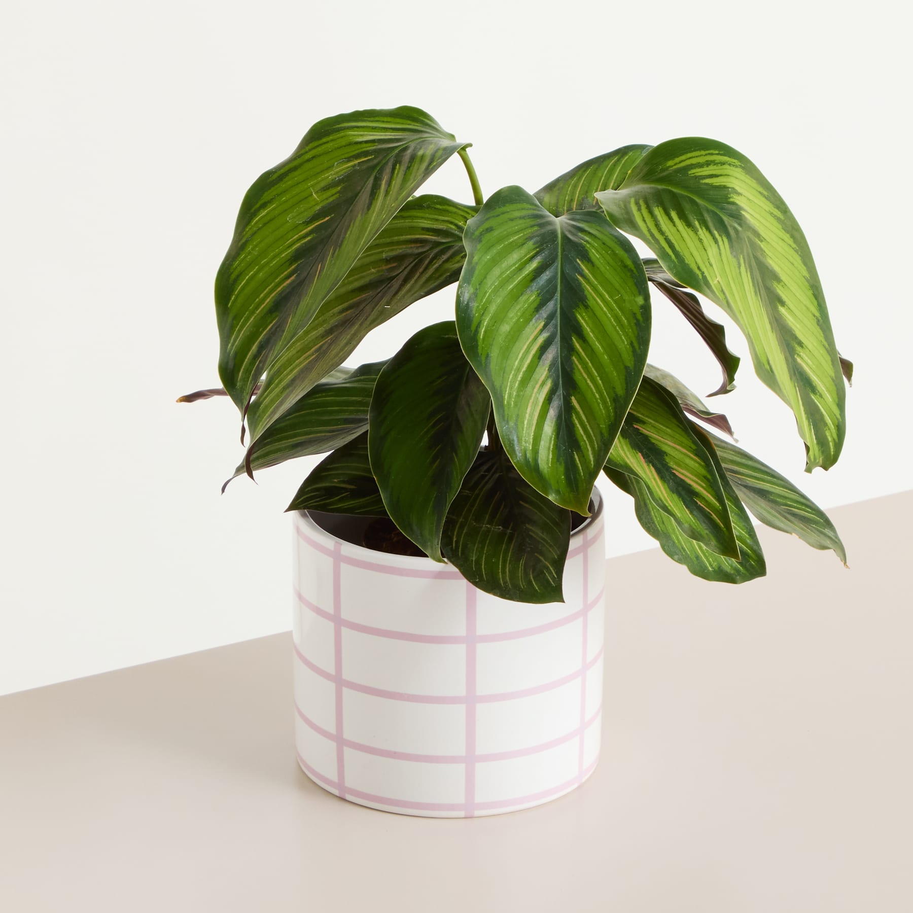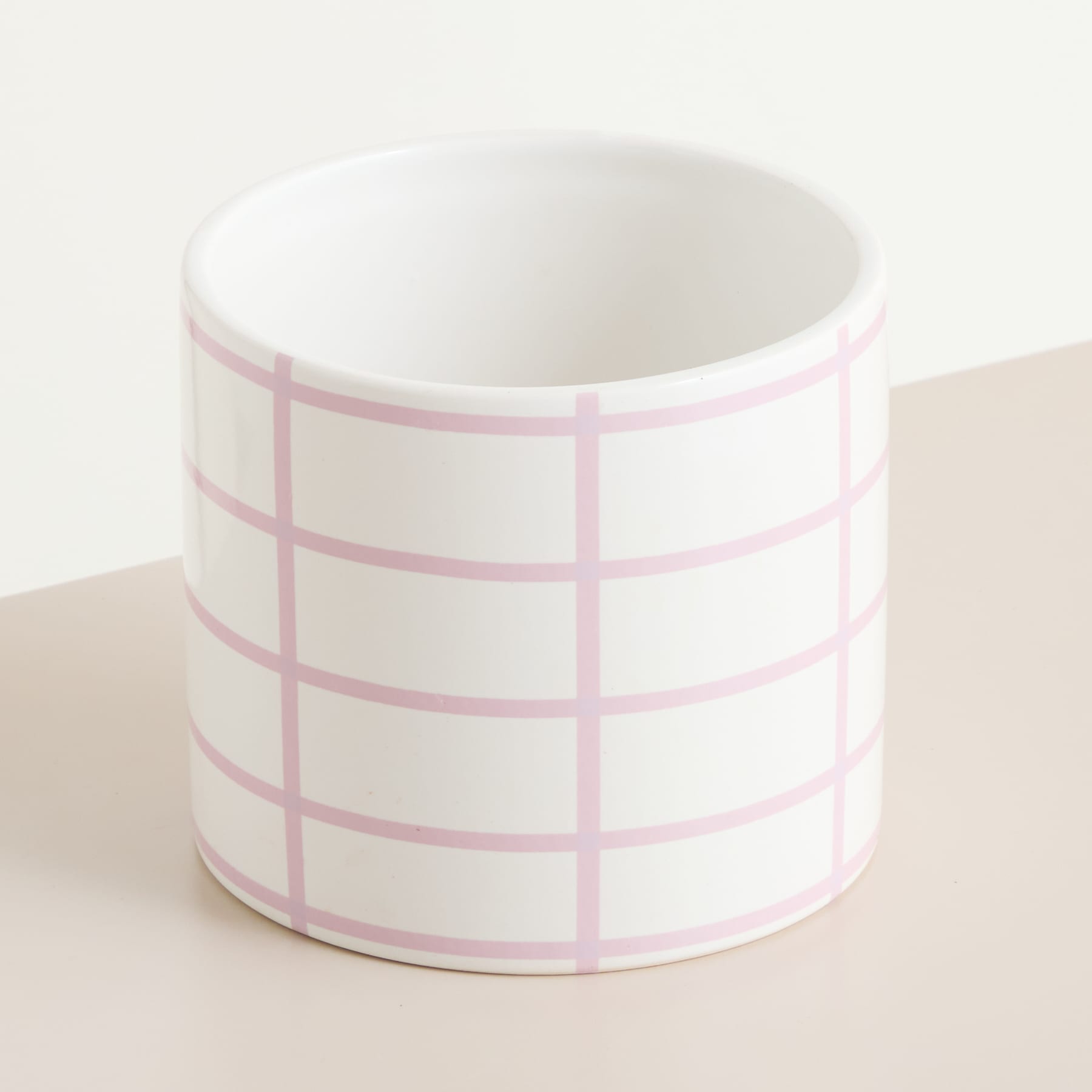 Ein Hauch von Frische zieht durch den Raum, und mitten im Licht steht er: der Keramik Übertopf Karo Creme Rosa - 13 cm. Sein sanftes Karomuster in zartem Rosa und cremigem Weiß erinnert an laue Frühlingstage und an gedeckte Picknickdecken. Mit 14,5 cm Breite und 13 cm Höhe bietet er deinen Pflanzen nicht nur Platz, sondern auch einen stilvollen Rahmen. Das karierte Muster verleiht dem Übertopf einen modernen Charme, der sich mühelos in jeden Wohnstil einfügt. Ob auf dem Sideboard, der Fensterbank oder als Blickfang im Regal – hier wird jede Pflanze zum Teil eines harmonischen Gesamtbilds. Die glatte Keramikoberfläche unterstreicht die klare Linienführung und lässt die Farben der Blätter besonders leuchten. Der Keramik Übertopf wartet darauf, dein Zuhause mit einer Prise zeitloser Eleganz zu bereichern.