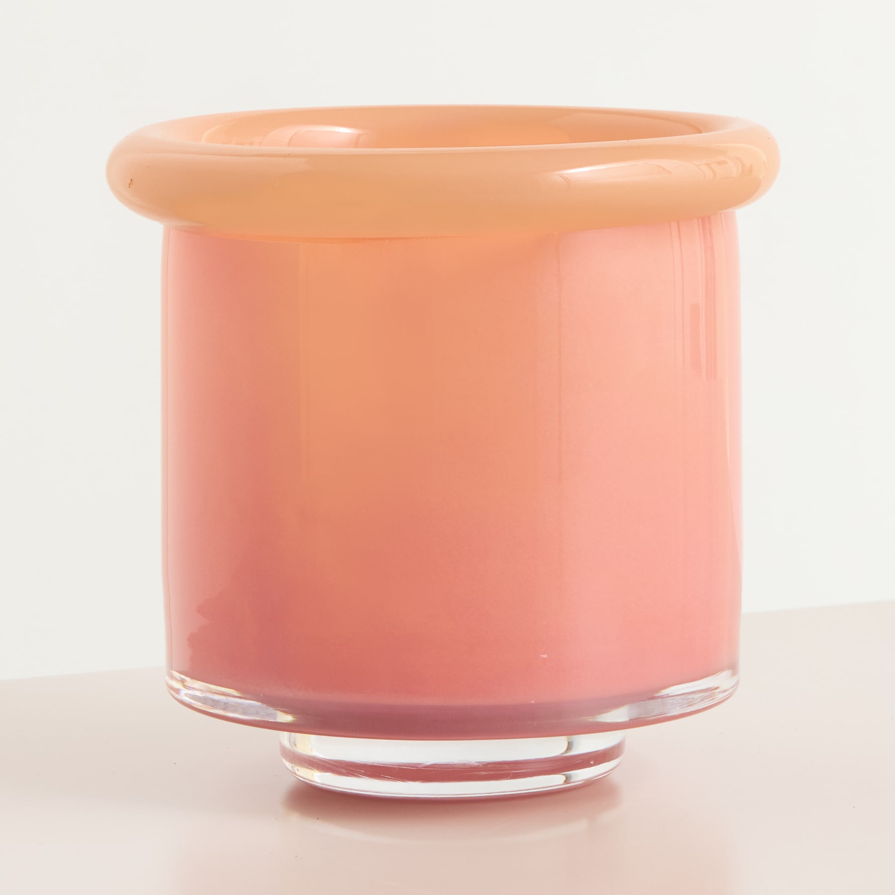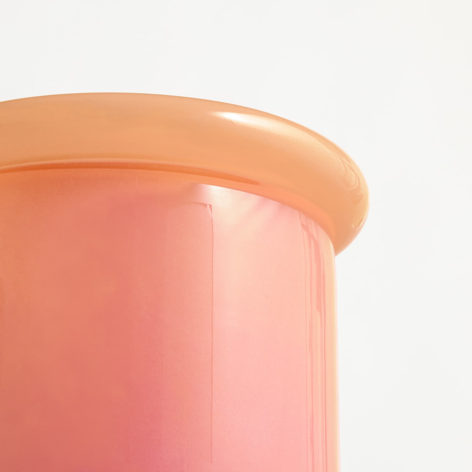 Stell dir vor, du sitzt an einem lauen Abend auf der Terrasse, die Sonne taucht alles in goldenes Licht, und auf dem Tisch steht ein Glas, das die Farben des Himmels einfängt. Genau diese Atmosphäre bringt der Glas Übertopf Rosa Aprikot - 12 cm in dein Zuhause. Mit seinem sanften Farbverlauf von zartem Rosa zu warmem Aprikot erinnert er an Urlaubstage am Mittelmeer, an frisch gepressten Orangensaft und an die Gelassenheit, die nur ein sonnenverwöhnter Moment schenken kann. Mit 13,5 cm Breite und 16,5 cm Höhe ist er großzügig genug, um deinen Pflanzen Raum zu geben, ohne dabei selbst in den Hintergrund zu treten. Mit diesem Übertopf holst du dir nicht nur ein praktisches Accessoire ins Haus, sondern ein kleines Stück Urlaubsfeeling, das jeden Tag ein bisschen heller macht.
