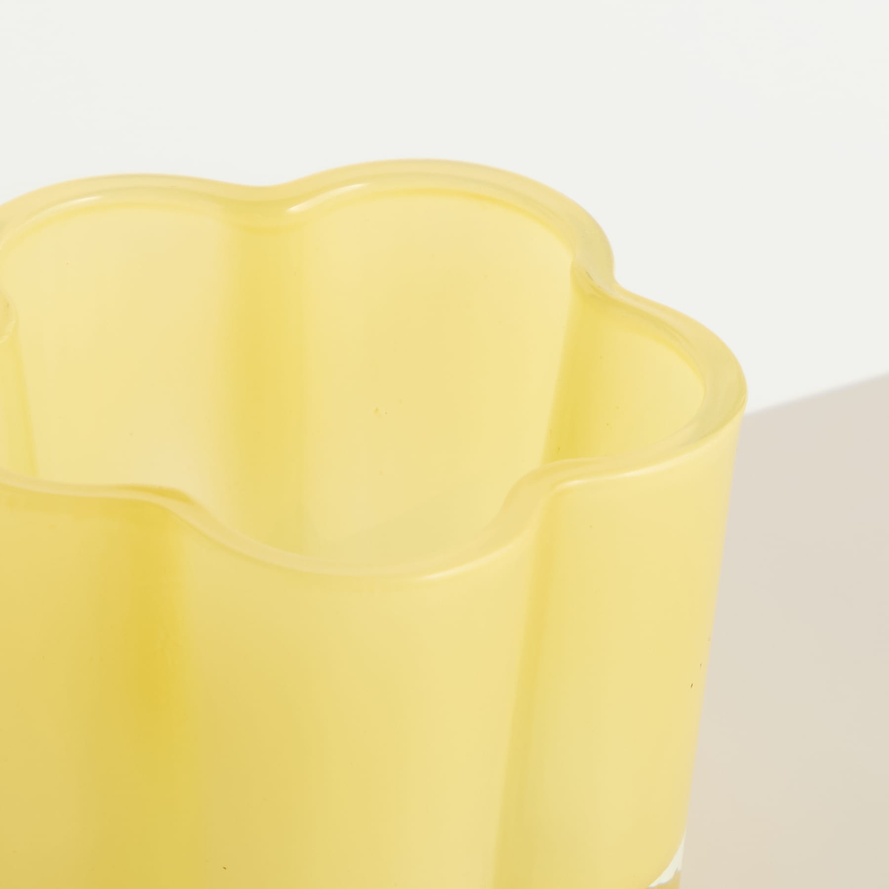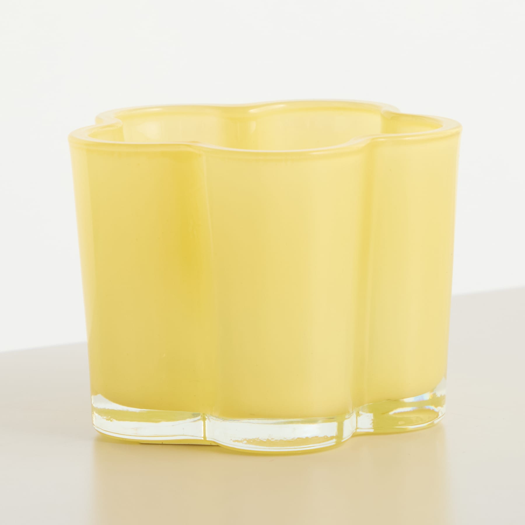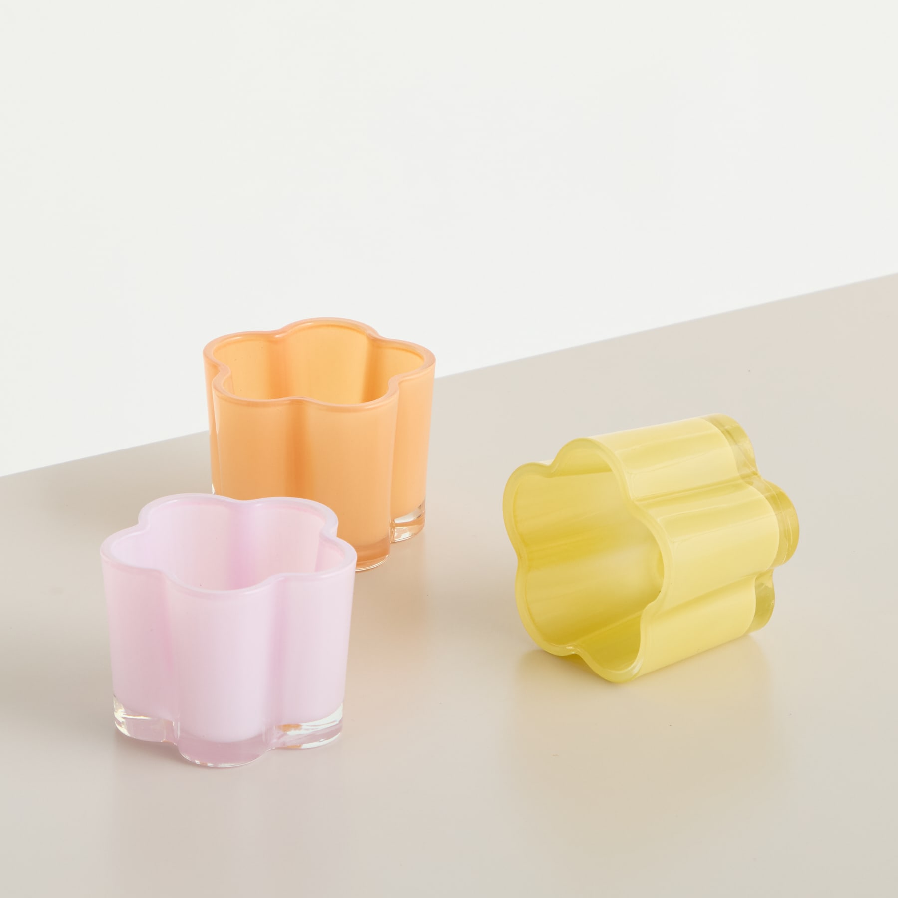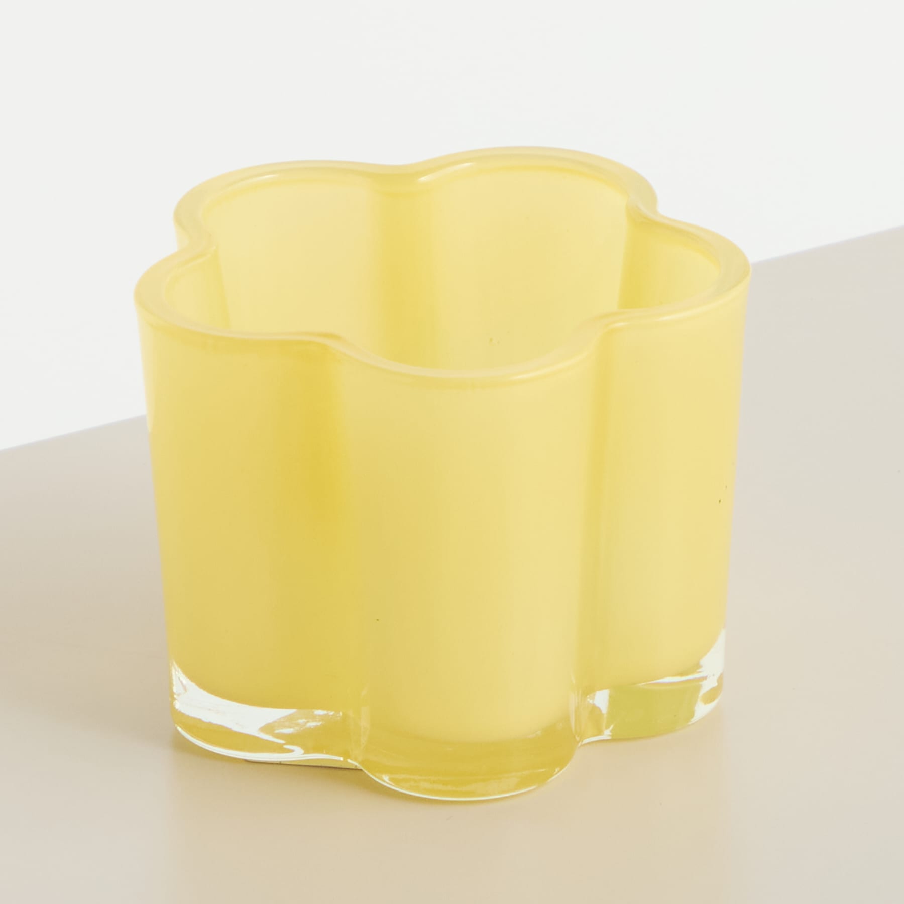 Der Glas Kerzenhalter Blume Gelb setzt auf klare Linien und eine zurückhaltende Ästhetik, die jeden Raum aufwertet. Seine blumenförmige, aber schlichte Form unterstreicht die Schönheit des Teelichthalters: Das zart getönte Glas in Gelb filtert das Licht eines Teelichts und schafft eine warme, gleichmäßige Ausstrahlung. Mit 8 cm Breite und 6 cm Höhe ist er kompakt und vielseitig einsetzbar – ob auf dem Couchtisch, im Regal oder als Akzent auf dem Esstisch. Sein Design ist bewusst unaufdringlich, aber mit einer leichten organischen Note, die an natürliche Formen erinnert. Der Kerzenhalter wirkt allein schon als dekoratives Objekt, entfaltet aber seine volle Wirkung, wenn das Licht durch das Glas bricht. Er ist auch in Apricot und Rosa erhältlich, sodass sich individuelle Farbakzente setzen lassen. Der Kerzenhalter schafft Atmosphäre, ohne aufdringlich zu wirken. Einfach ein Teelicht platzieren und die ruhige Lichtstimmung genießen.