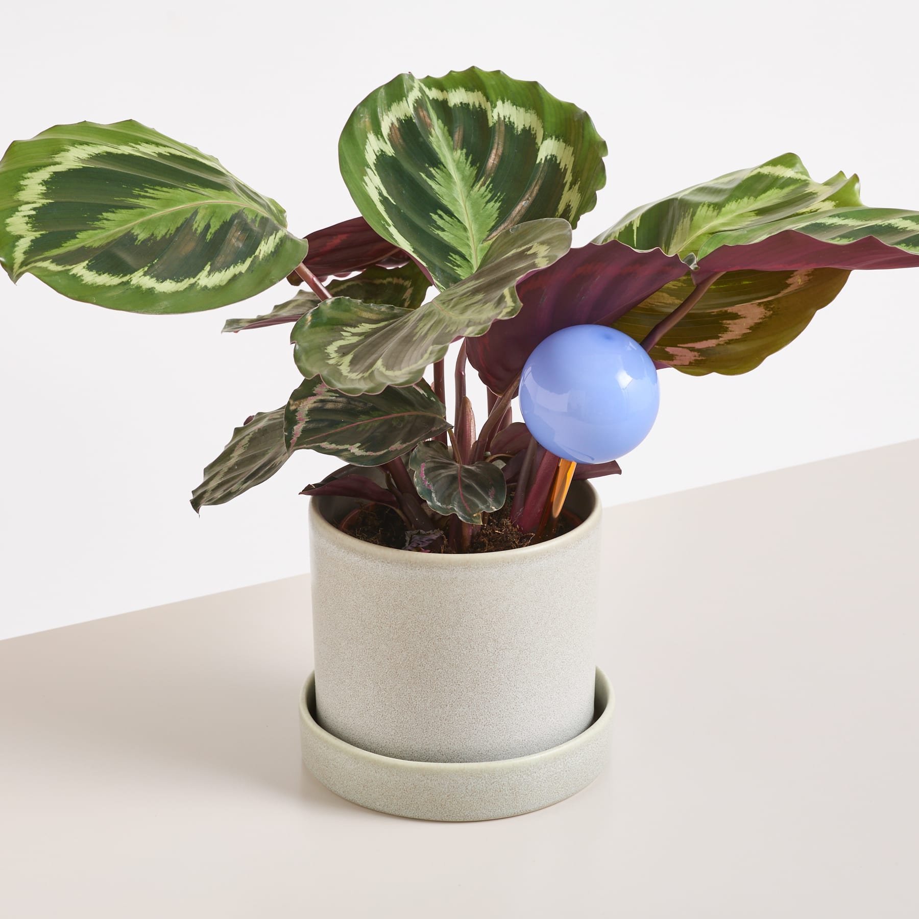 Die Glas Bewässerungskugel Blau Orange Rund ist mehr als nur ein nützliches Helferlein für deine Pflanzen – sie ist ein dekoratives Highlight. Die zarte blaue Kugel mit dem schlanken, orangefarbenen Stiel sorgt nicht nur für eine gleichmäßige Bewässerung, sondern setzt auch einen farbigen Akzent in deinem Zuhause. Mit 7,5 cm Breite und 25 cm Höhe passt sie perfekt in Blumentöpfe und übernimmt die Bewässerung, während du dich um andere Dinge kümmerst. Einfach die Kugel mit Wasser füllen, umdrehen und in die Erde stecken. Die Pflanze nimmt nach und nach Feuchtigkeit auf, und die Kugel wird zum Blickfang zwischen den Blättern. Besonders schön wirkt sie in Kombination mit großen grünen Pflanzen, wo ihr zartes Orange und das Blau einen harmonischen Kontrast bilden. Diese Bewässerungskugel ist ideal für alle, die ihre Pflanzen optimal versorgen und gleichzeitig Wert auf ein ansprechendes Design legen. Einfach, funktional und stilvoll – so wird Gießen zum ästhetischen Erlebnis.