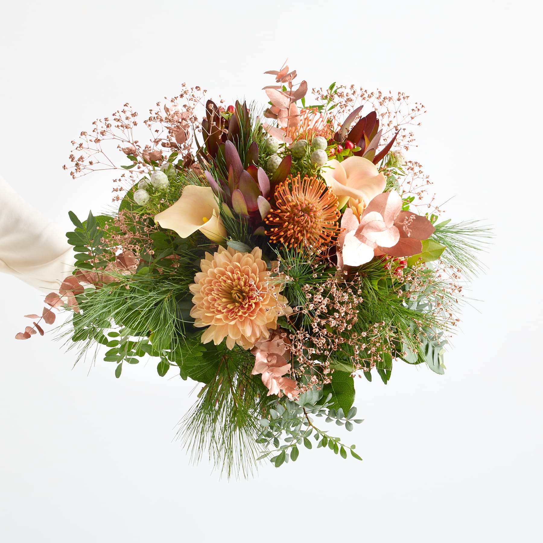 Adventszauber – ein Strauß, der den Winter in warmes Licht taucht. Mit edler Calla, leuchtenden Chrysanthemen und der exotischen Schönheit der Nadelkissen-Protea entfaltet sich ein festliches Arrangement, das Herz und Sinne berührt. Zarter Eukalyptus und duftendes Kieferngrün verströmen frische Waldnoten, während Johanniskraut und Leucadendron goldene Akzente setzen. Ein Hauch von Schleierkraut und Salal rundet das winterliche Kunstwerk sanft ab. Verschenke mit diesem Strauß einen Moment echter Geborgenheit – ein liebevoller Gruß, der die Vorfreude auf Weihnachten spürbar macht. Ob für Familie, Freunde oder Herzensmenschen: Adventszauber schenkt Wärme, Glanz und ein Lächeln, das bleibt – wie das Licht der Kerzen im Advent.