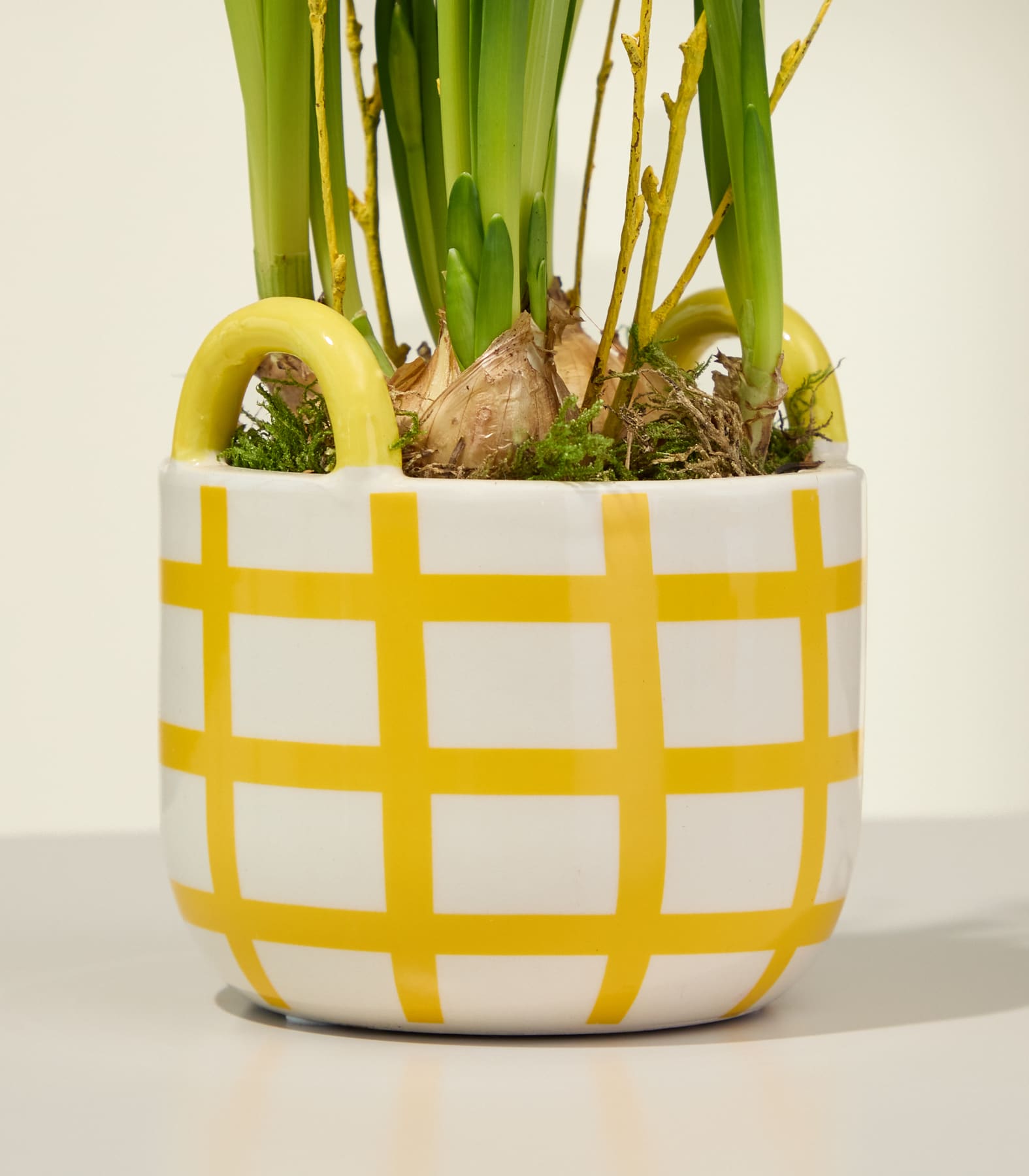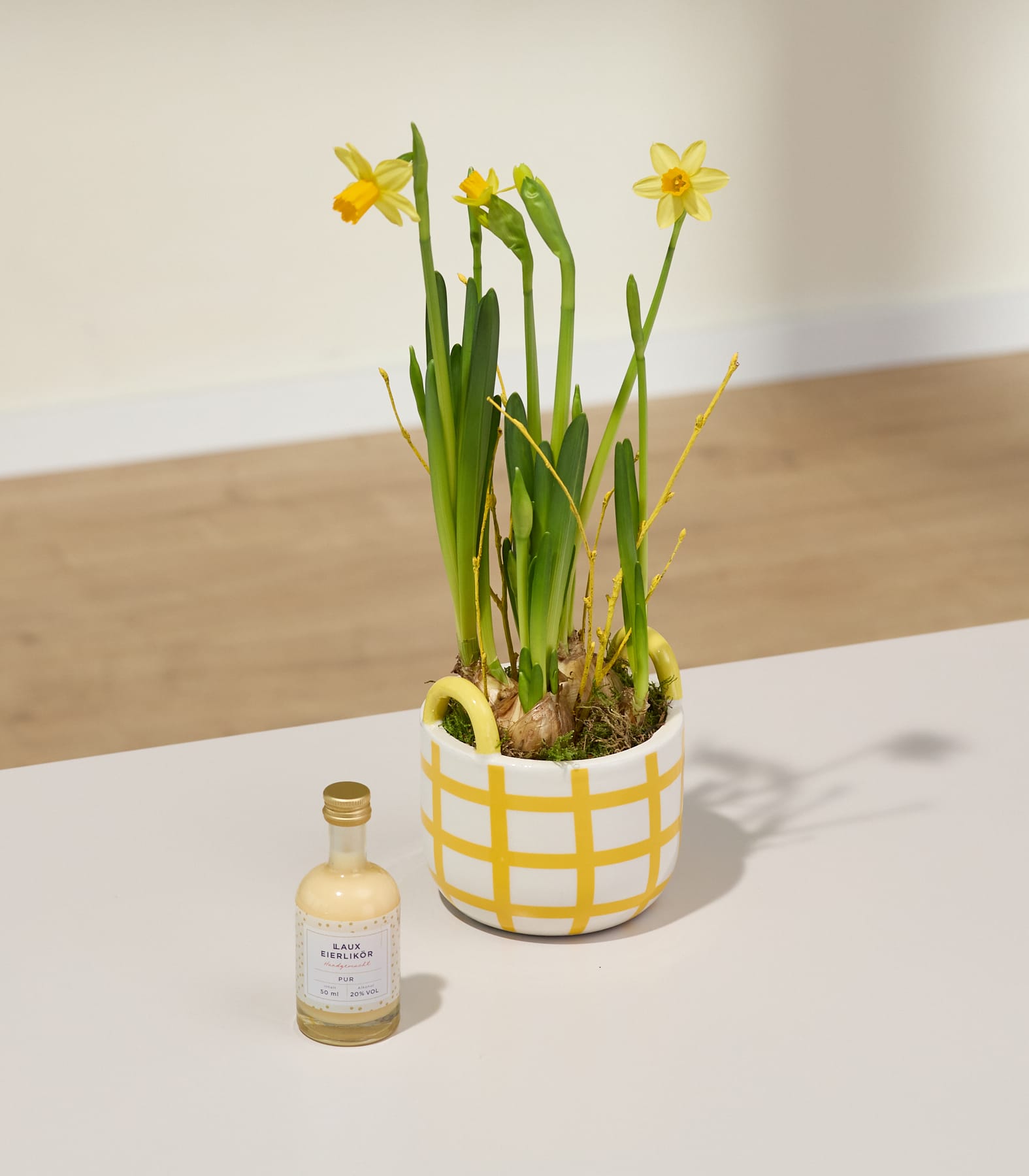 Mit unseren Narzissen Little Easter verschenkst du ein fröhliches Stück Frühling. Die leuchtend gelben Narzissen strahlen wie kleine Sonnen und bringen frische Energie in jedes Zuhause. Als klassische Frühlingsboten stehen sie für Neubeginn, Hoffnung und liebevolle Herzensmomente – perfekt, um deinen Liebsten eine besondere Freude zu bereiten. Mit einer Wuchshöhe von ca. 20 cm und einer Topfgröße von ca. 9 cm findet das Arrangement überall seinen Platz – auf dem Tisch, der Fensterbank oder auch draußen auf Balkon und Terrasse. Denn Narzissen fühlen sich nicht nur drinnen wohl, sondern sind auch für den Außenbereich bestens geeignet. Der gelb-weiß gestreifte Keramik-Übertopf rundet das frühlingshafte Gesamtbild harmonisch ab.
