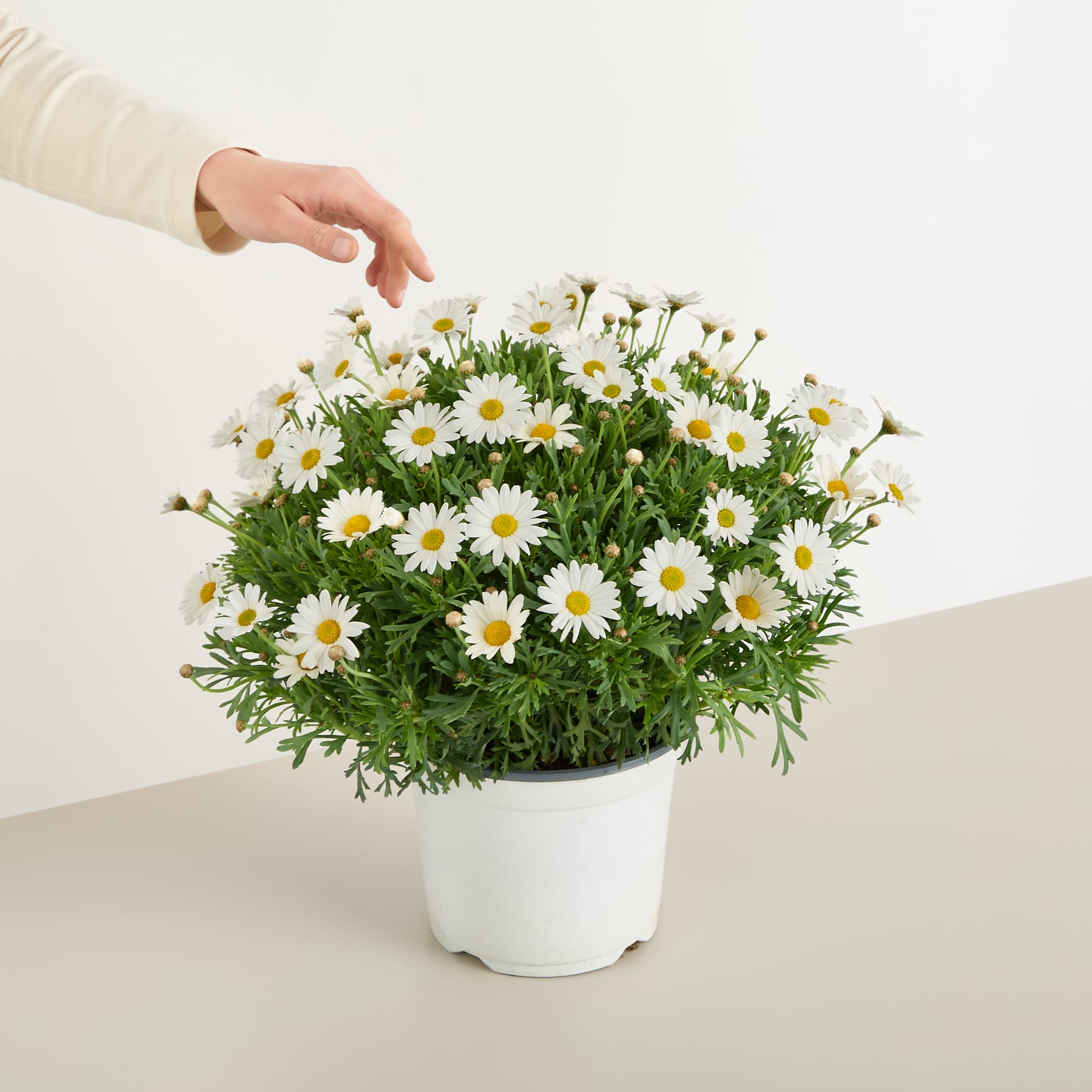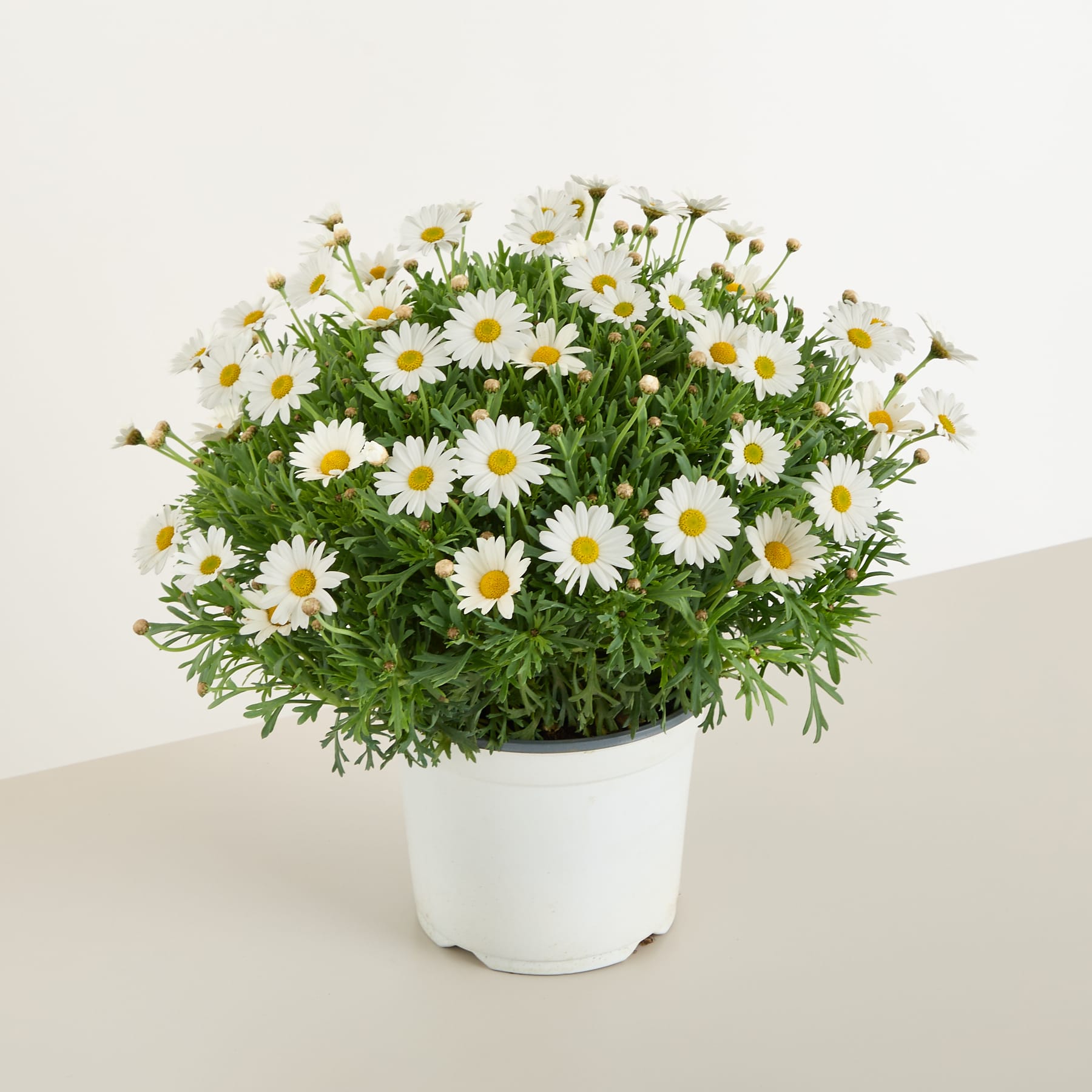 Klassisch, strahlend und immer ein Hingucker – die Weiße Margerite blüht mit großen, strahlenden Blütenköpfen von Juni bis September. Ihr kräftiges Grün bildet einen perfekten Kontrast zu den gelben Herzen. Die Leucanthemum maximum liebt sonnige bis halbschattige Plätze mit normalem Gartenboden. Sie bleibt buschig, robust und zieht Bestäuber an. Die Weiße Margerite eignet sich für Beete, Schnittblumen oder Staudenmischungen – unkomplizierte Sommerfreude.