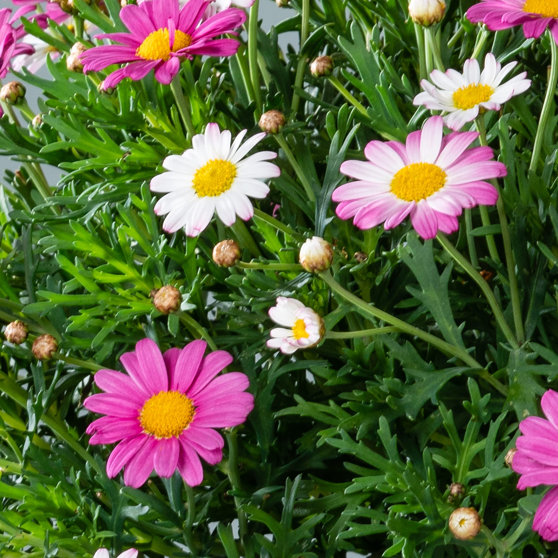 Sanftrosa und elegant – die Rosafarbene Margerite bringt pastellige Wärme mit gefüllten Blüten in den Garten. Sie blüht üppig von Sommer bis Herbst und verleiht Beeten eine romantische Note. Die Leucanthemum maximum gedeiht sonnig bis halbschattig auf durchlässigem Boden und bleibt stabil im Wuchs. Die Rosafarbene Margerite ist winterhart, pflegeleicht und ideal für gemischte Rabatten – eine zarte Schönheit mit langanhaltender Blüte.