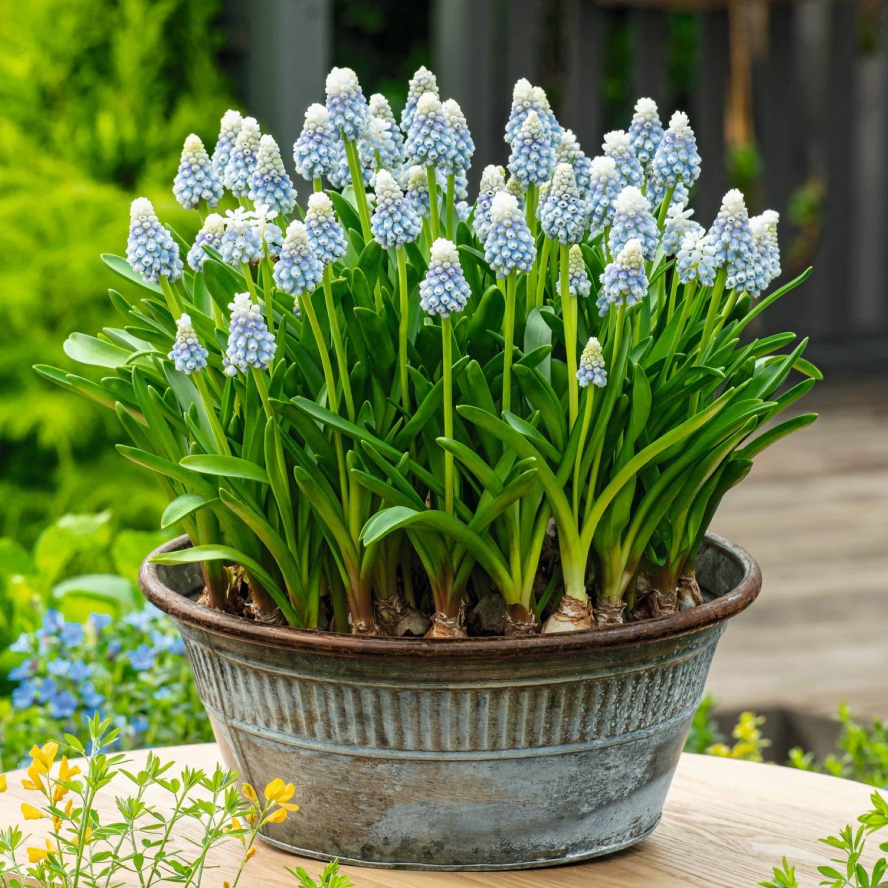 Wie kleine Schmuckperlen reihen sich die Blüten der Zweifarbigen Traubenhyazinthe aneinander und bringen frischen Schwung in dein Frühlingsbeet! Die feinen Blüten köstlich duftender Trauben wechseln zwischen tiefem Blau und hellen Weißnuancen – ein faszinierendes Farbspiel, das sofort ins Auge fällt. Die Muscari armeniacum liebt sonnige bis halbschattige Standorte und bevorzugt gut durchlässige, leicht feuchte Böden. Pflegeleicht und zuverlässig blühend, begeistert sie Jahr für Jahr aufs Neue. Pflanze die Zweifarbige Traubenhyazinthe in Gruppen, um ihren vollen Effekt zu genießen – sie ist der perfekte Frühlingsbote, der Garten, Balkon und Terrasse in ein zartes Farbmeer verwandelt.