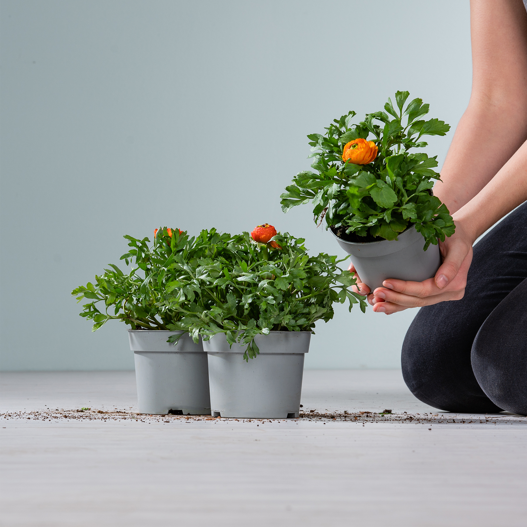 Rosen ohne Dornen, pure Blütenpoesie – die Ranunkeln entfalten ihre gefüllten, samtigen Blüten wie Juwelen in zufälligen Farben! Jede Ranunkel überrascht mit intensiven Rottönen, sanften Pinks oder cremigem Weiß und bringt orientalische Eleganz in Beete, Vasen oder Kübel. Die Ranunculus hybrid blüht prächtig an sonnigen bis halbschattigen Standorten und liebt frische, gut durchlässige Erde mit gleichmäßigem Wasserbedarf – nie zu nass, damit die Knollen gesund bleiben. Von Frühling bis Frühsommer zaubert die Ranunkel üppige Farbexplosionen, die Schmetterlinge anlocken und jeden Blick fesseln. Mit drei Stück gestaltest du harmonische Gruppen, die deinen Garten in ein Blumenparadies verwandeln – für alle, die opulente Schönheit und Frische schätzen.