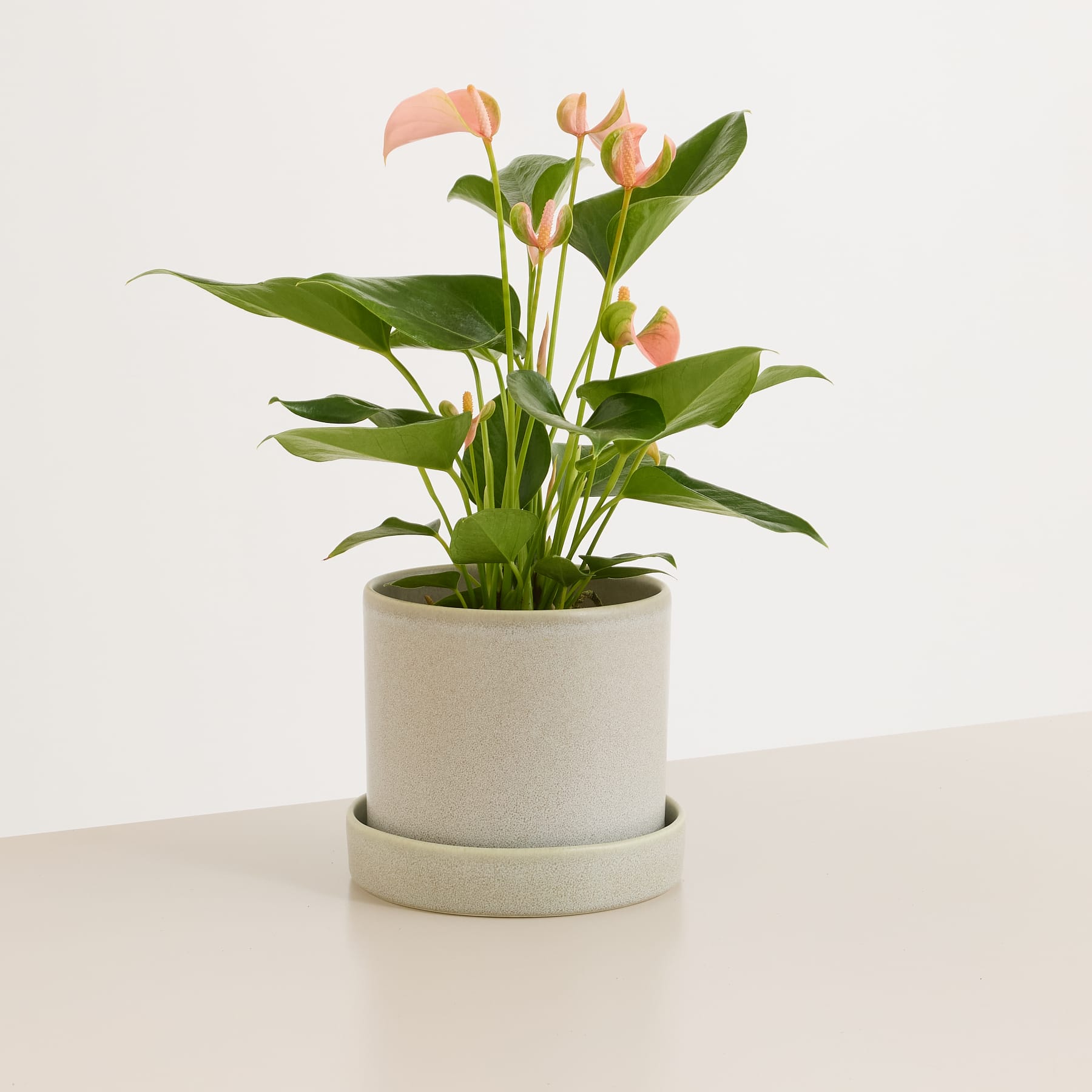 Ein Hauch tropischer Eleganz zieht mit der Flamingoblume Pink bei dir ein! Ihre leuchtend rosafarbenen Hochblätter bringen das ganze Jahr über Farbe und Leichtigkeit in dein Zuhause. Die Anthurium andraeanum ist eine echte Stimmungsmacherin – perfekt für alle, die auf der Suche nach einer pflegeleichten Zimmerpflanze mit Charakter sind. Sie liebt helle Standorte ohne direkte Sonne und mag es angenehm warm. Ihre Erde sollte stets leicht feucht bleiben, aber stehendes Wasser bitte vermeiden. Mit etwas Aufmerksamkeit und regelmäßigem Gießen zeigt dir die Flamingoblume Pink immer wieder neue, glänzende Blätter und kräftige Blüten. Eine tropische Schönheit, die jeden Raum sofort veredelt und gute Laune versprüht.