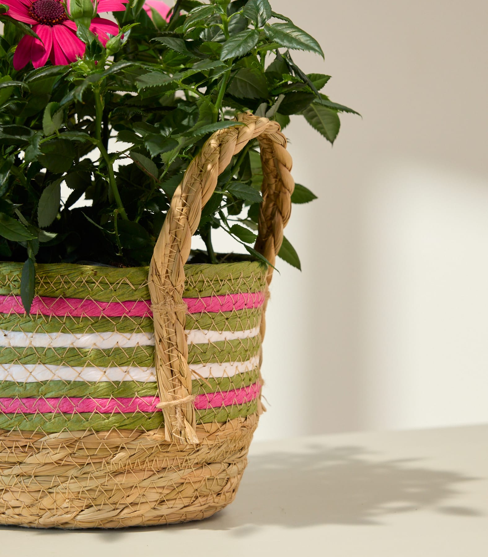Ein Hauch Frühling zum Verschenken: Unsere Pflanze im Topf Blumenglück verzaubert mit zarten Pinktönen und einer harmonischen Kombination aus Margerite und Rose. Mit einer Wuchshöhe von ca. 35 cm ist diese blühende Schönheit ideal für Balkon, Terrasse oder den Lieblingsplatz im Garten. Sie liebt helle Standorte und ist winterhart – ein Geschenk, das bleibt. Pflegeleicht und dennoch voller Ausdruck schenkt sie jeden Tag kleine Glücksmomente. Ob als liebevolle Aufmerksamkeit für deine beste Freundin oder als frischer Farbklecks für Herzensmenschen – unser Blumenglück sagt mehr als tausend Worte. Ein lebendiger Frühlingsgruß, der Leichtigkeit, Wärme und ein Lächeln direkt ins Zuhause bringt.
