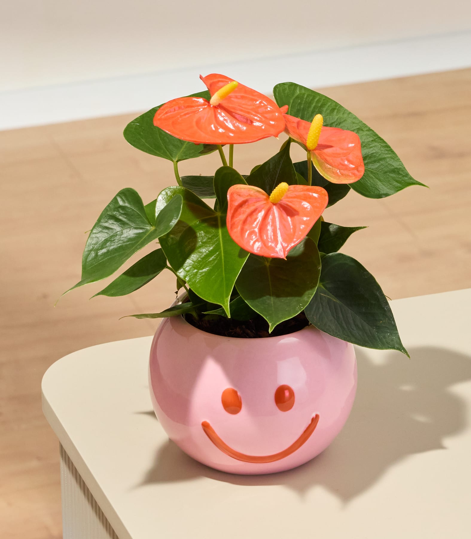 Manchmal braucht es nicht viel für ein echtes Lächeln: Unsere Pflanze im Topf Smile ist die perfekte kleine Aufmerksamkeit mit großer Wirkung. Die pinke Anthurie überzeugt mit klaren Formen und strahlender Farbe. Mit nur ca. 30 cm Höhe und ihrer kompakten Topfgröße passt sie ideal in kleine Räume oder auf den Schreibtisch. Sie liebt helle Plätze und bringt sofort gute Laune in jedes Zuhause. Dieses Geschenk ist wie ein täglicher Reminder, die kleinen Dinge zu genießen. Ob für Lieblingsmenschen, Freunde oder um einfach mal danke zu sagen – Unsere Blühpflanze Smile sorgt zuverlässig für positive Vibes und einen Hauch Frühling im Alltag.